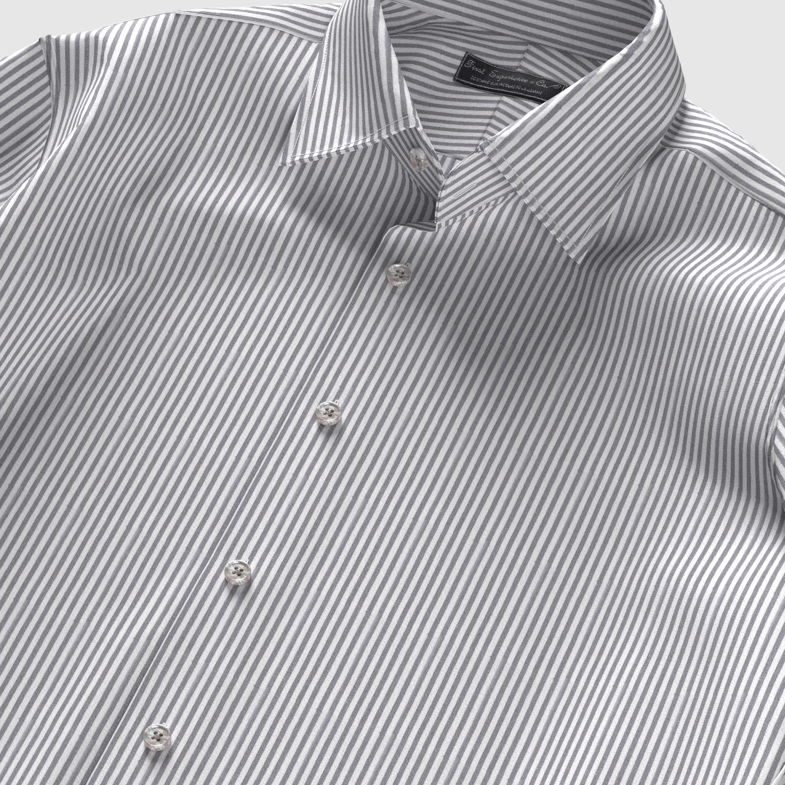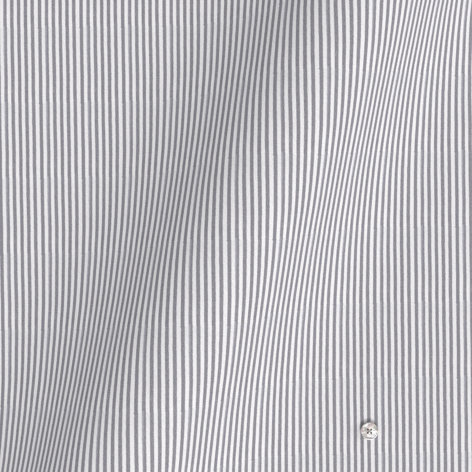 麻のようなナチュラル感と、ドライな風合いのリネンライクながらオックスの雰囲気もあるブラック・ストライプのファブリックです。