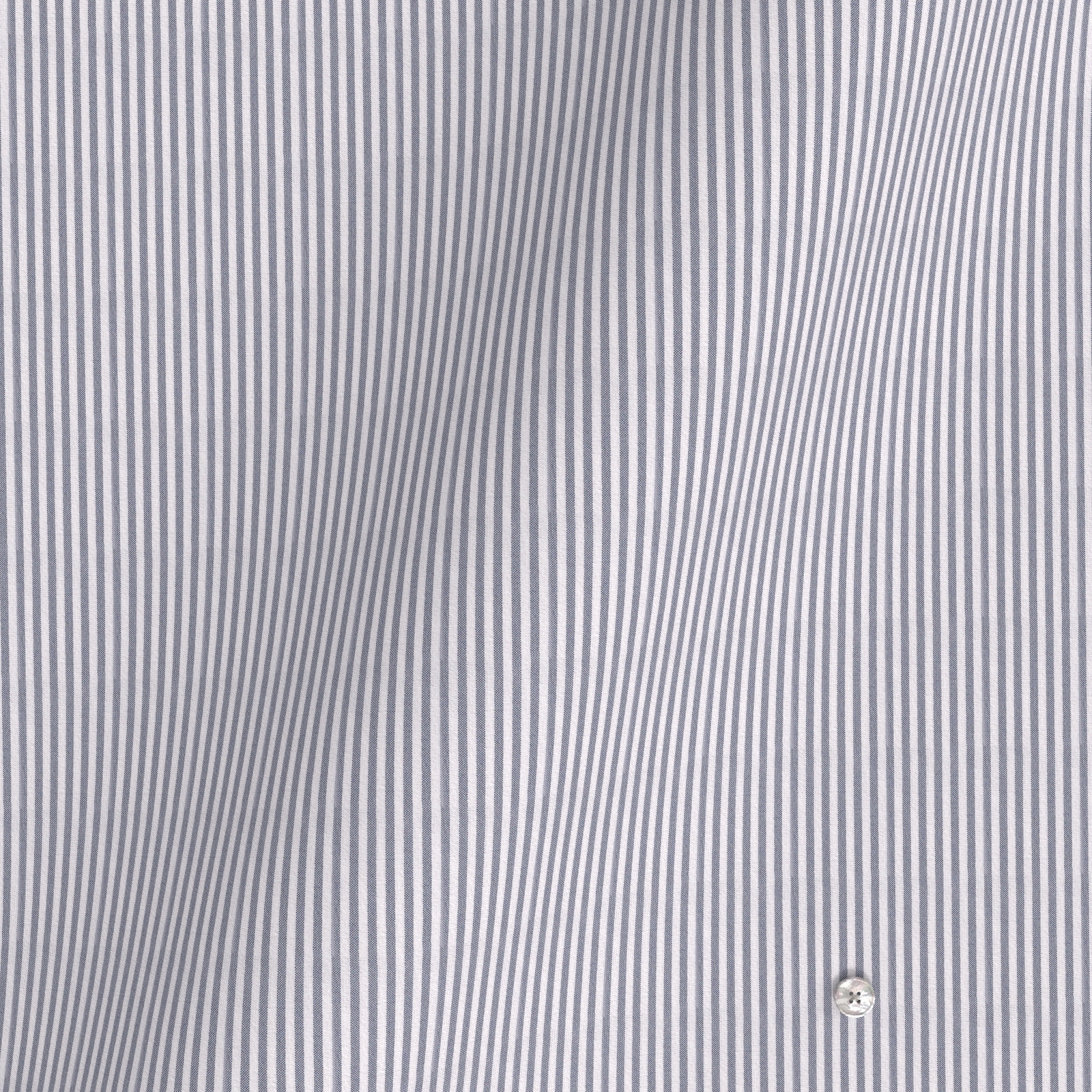 麻のようなナチュラル感と、ドライな風合いのリネンライクながらオックスの雰囲気もあるネイビー・ストライプのファブリックです。