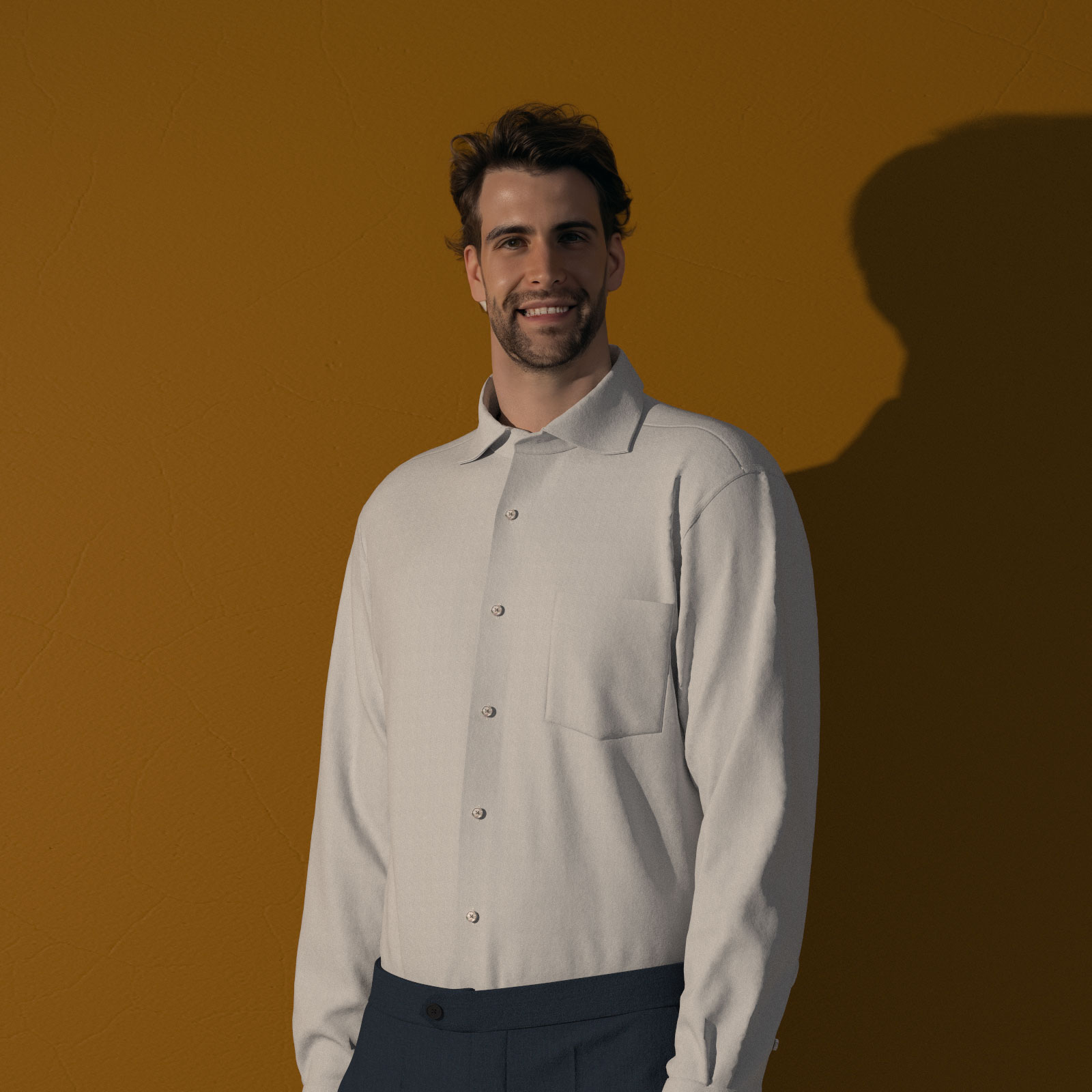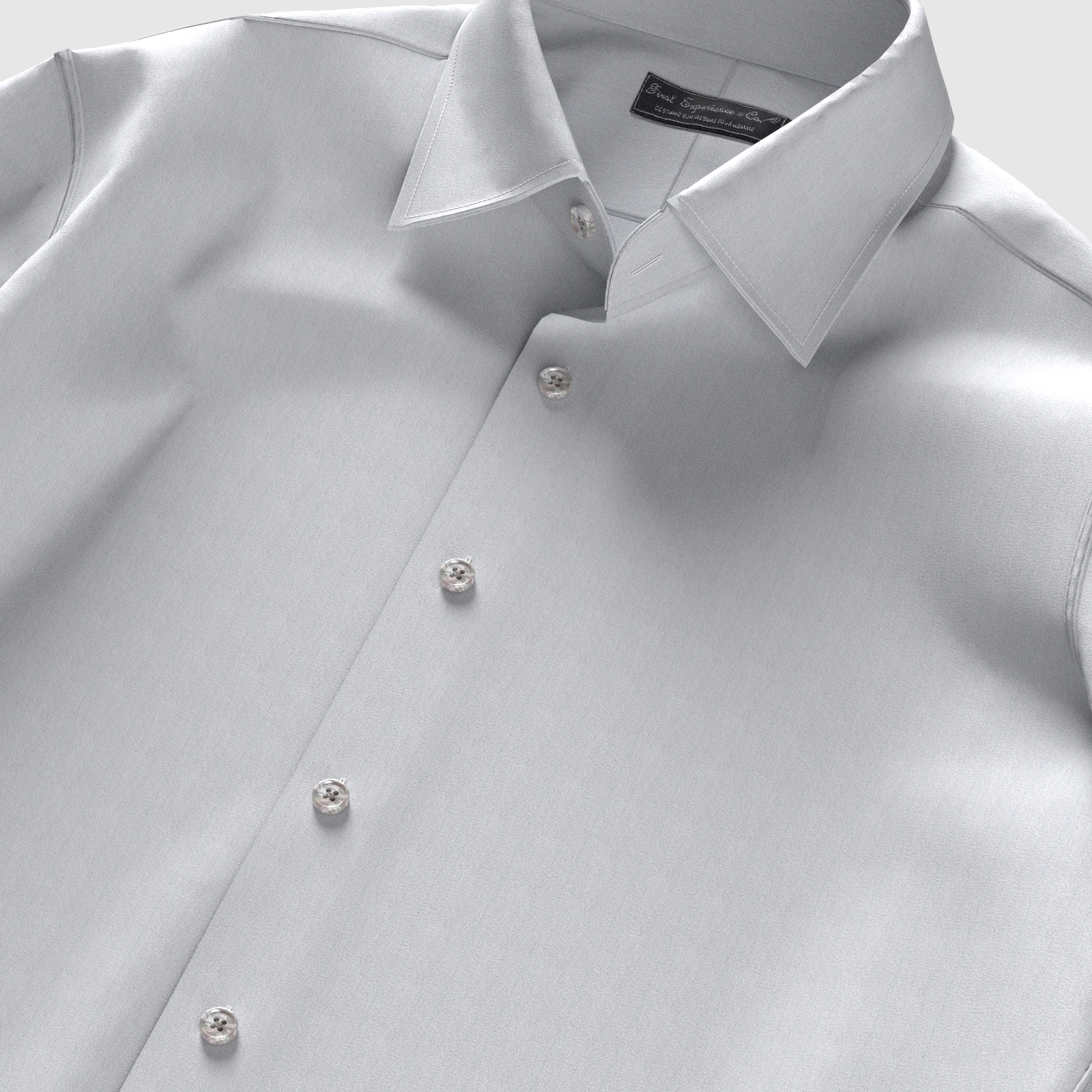 世界の名だたるハイブランドを顧客に持つイタリアの名門ジャージー専業サプライヤーのEURO JERSEY社の布帛のシャツ生地のようなハリ感のある細番手ライトグレー・トリコット素材です。