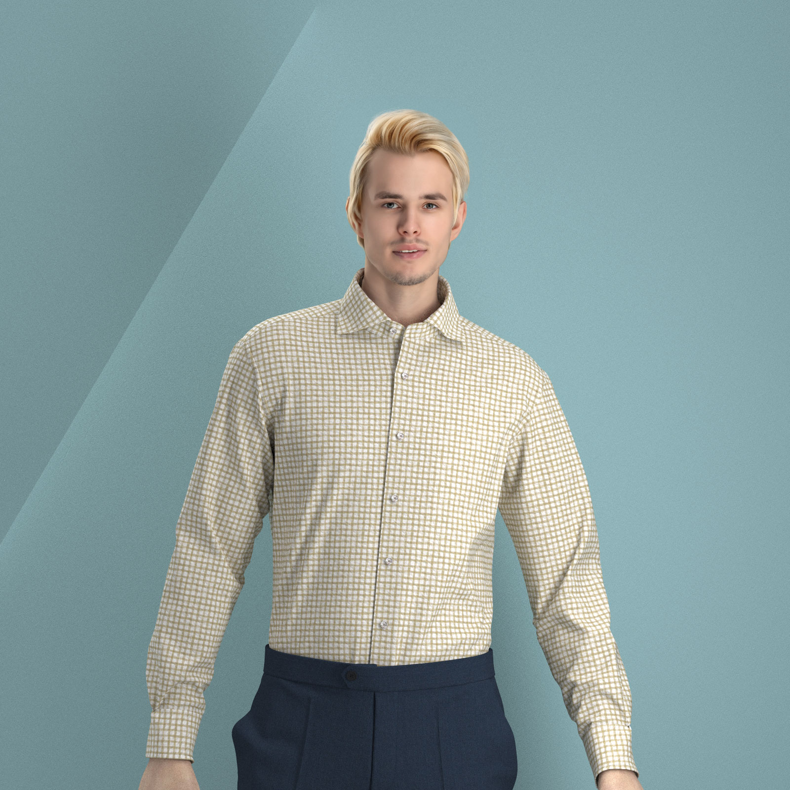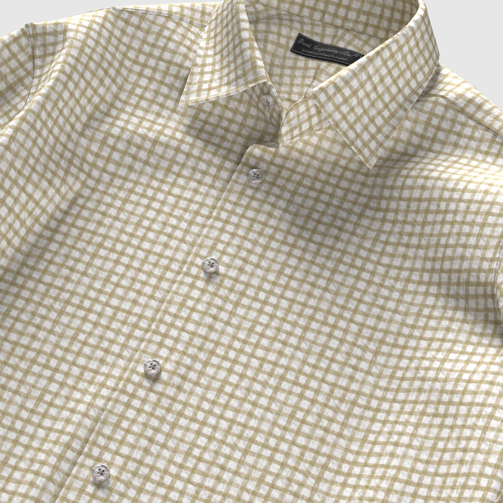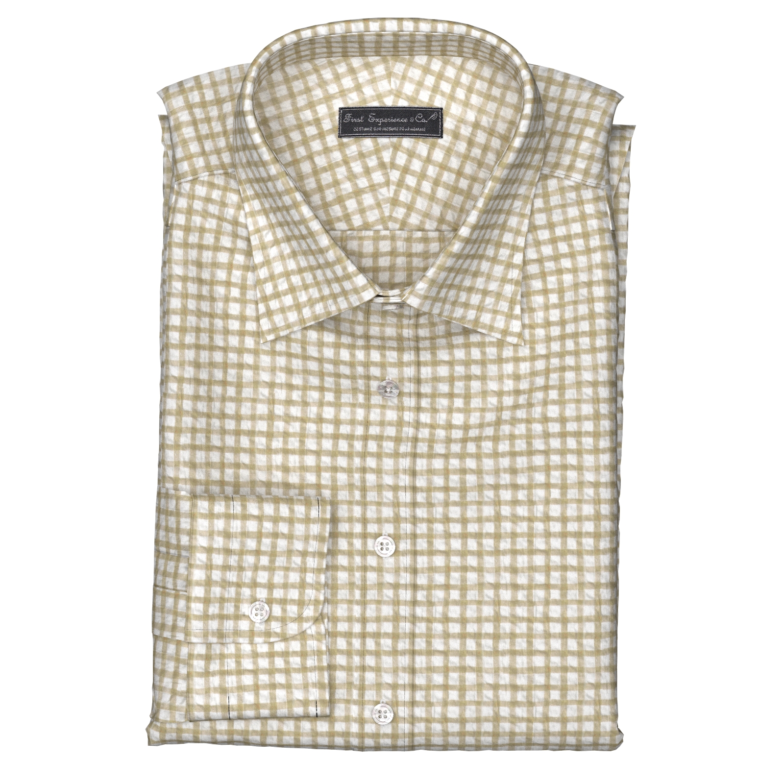 風合いがソフトな80双糸の上質素材を使用した凹凸感のあるシアサッカー素材のようなミラクルウエーブの手書き風ベージュ・でチェック生地となります。