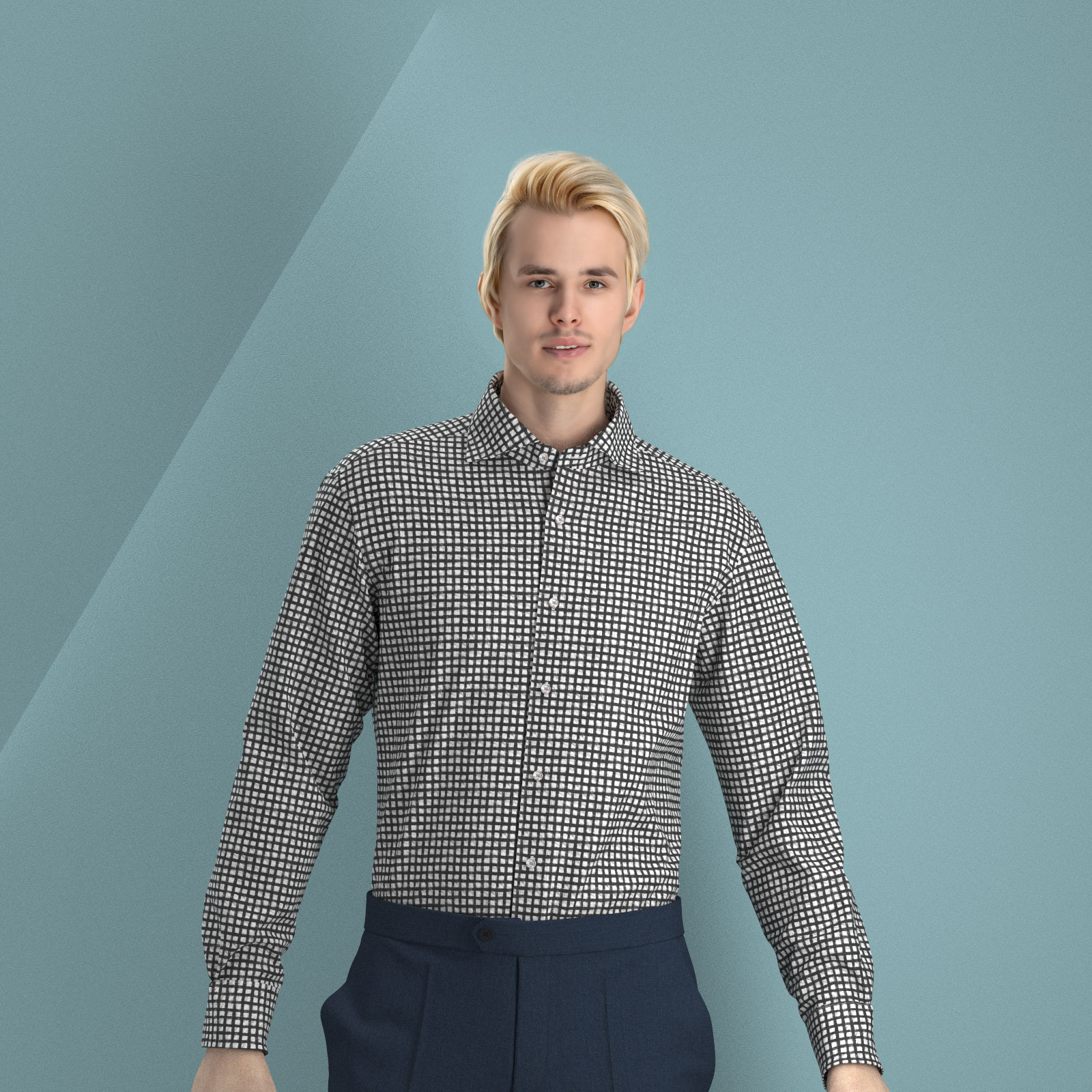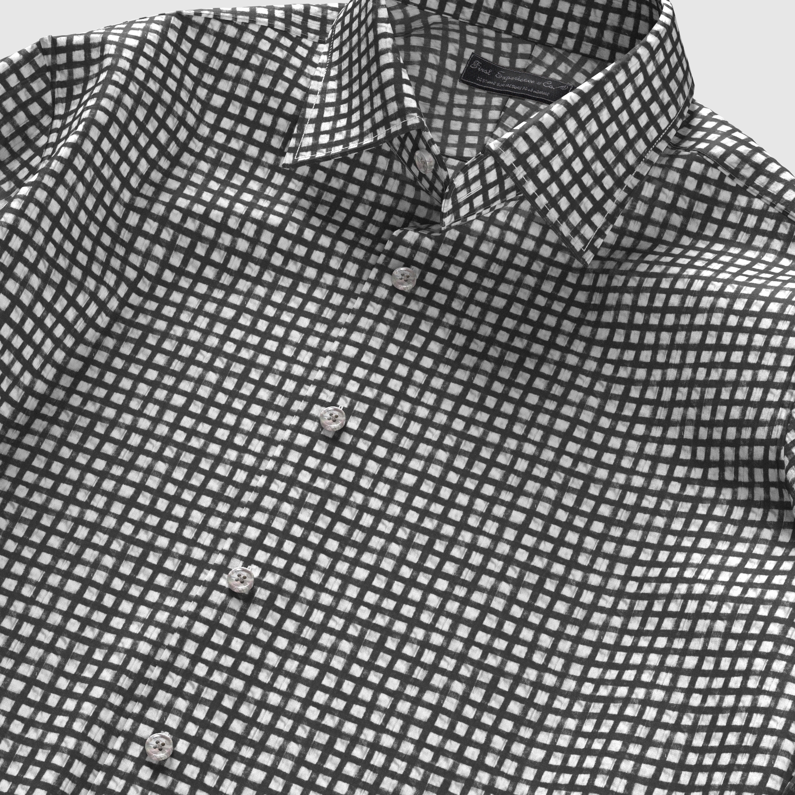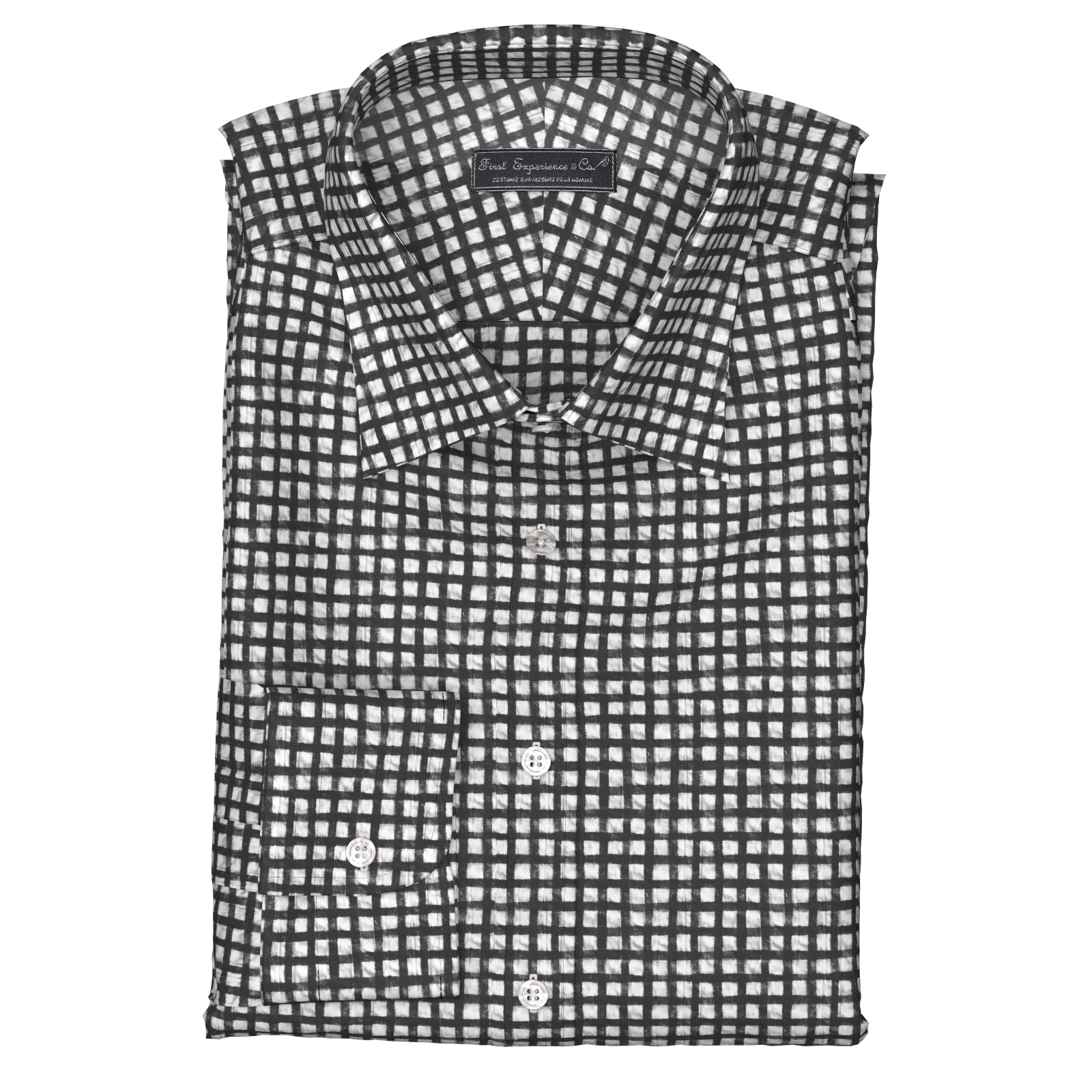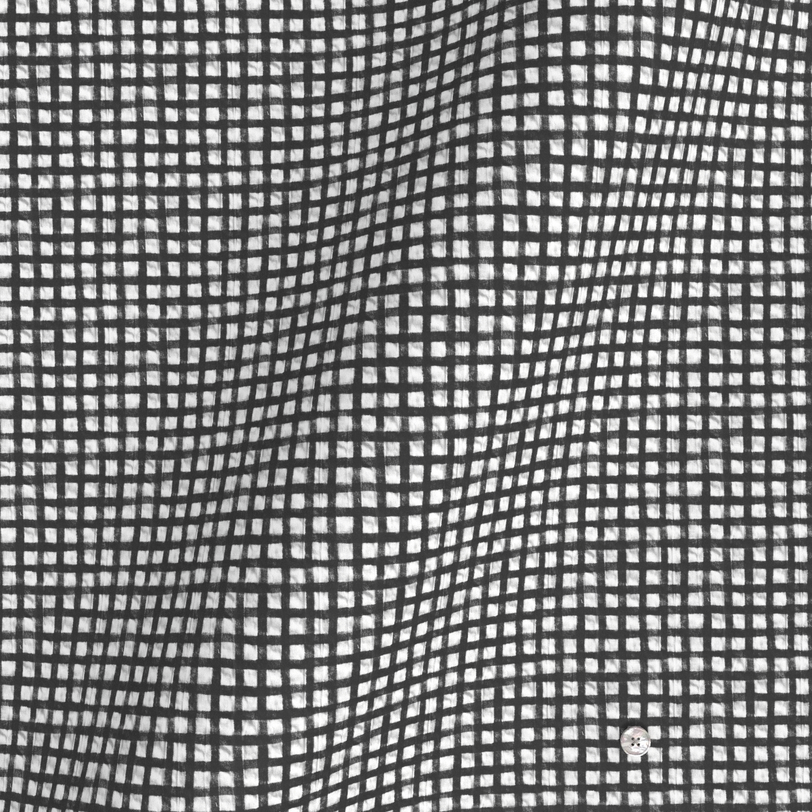 風合いがソフトな80双糸の上質素材を使用した凹凸感のあるシアサッカー素材のようなミラクルウエーブの手書き風ブラック・チェック生地となります。