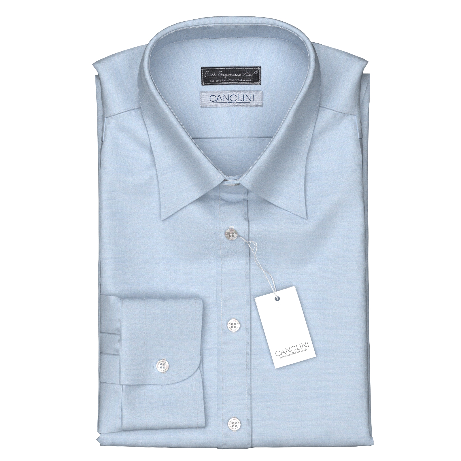 イタリアの名門カンクリーニのラグジュアリー・ラインLUSSOの140双糸サックス・ブロード生地です。