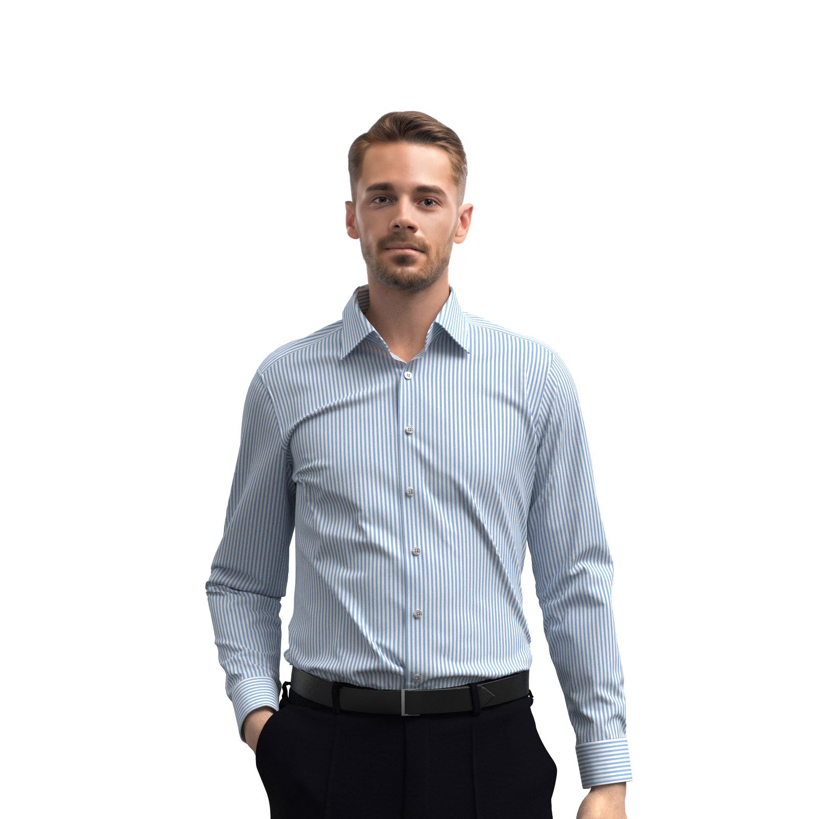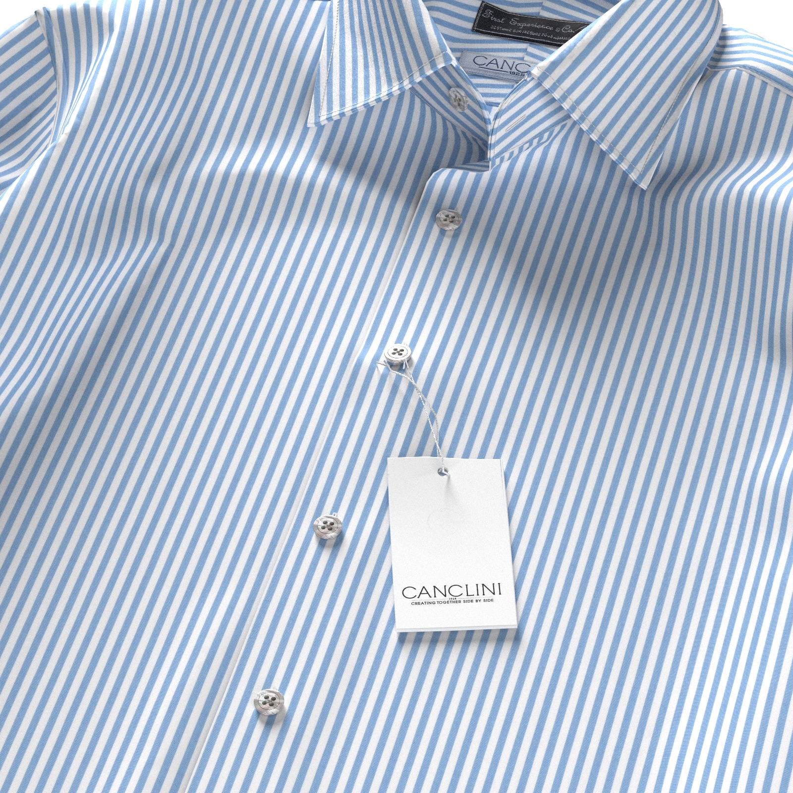 イタリアの名門カンクリーニのラグジュアリー・ラインLUSSOの140双糸サックス・ロンドンストライプ生地です。
