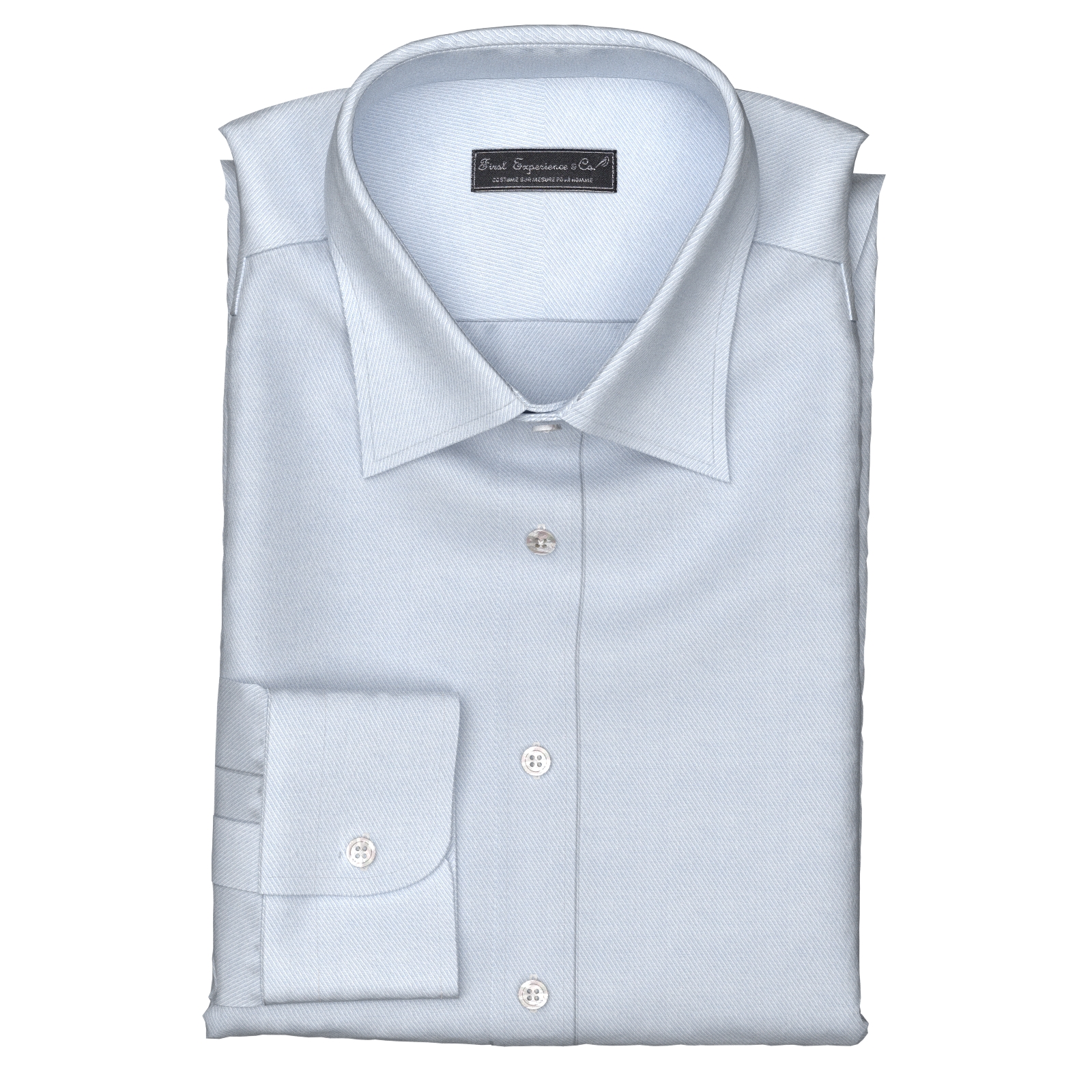 きれいなサックス・ツイルの綿100%イージーケア素材です。家庭洗濯+軽いアイロンがけですっきり・きっちりと着こなせる忙しいビジネスマンにぴったりの素材です。肌触りも綿100%の風合いを損なわない着心地です。