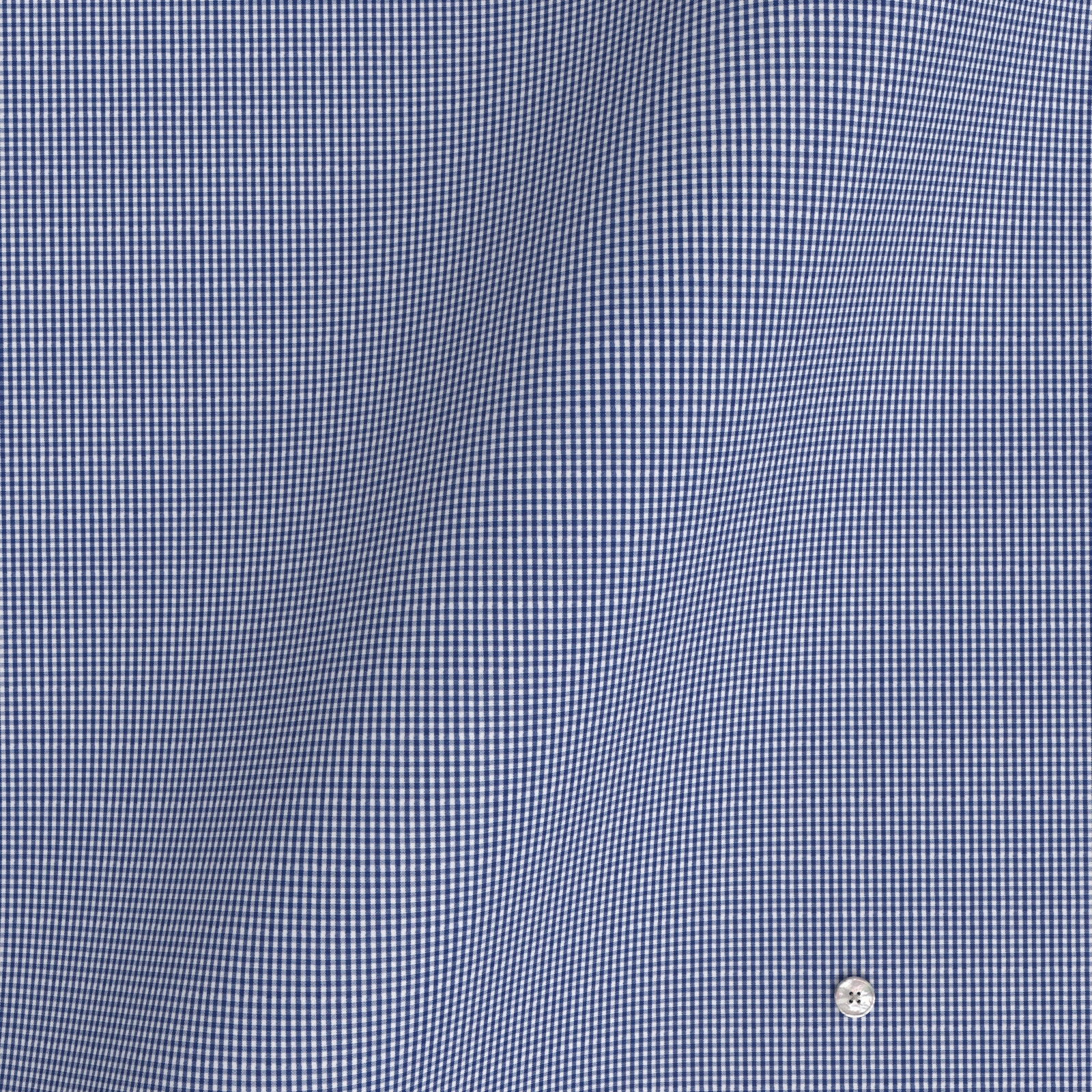 きれいなネイビー・チェックの綿100%イージーケア素材です。家庭洗濯+軽いアイロンがけですっきり・きっちりと着こなせる忙しいビジネスマンにぴったりの素材です。肌触りも綿100%の風合いを損なわない着心地です。