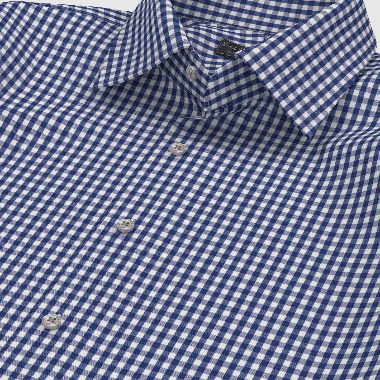 きれいなネイビー・ブロックチェックの綿100%イージーケア素材です。家庭洗濯+軽いアイロンがけですっきり・きっちりと着こなせる忙しいビジネスマンにぴったりの素材です。肌触りも綿100%の風合いを損なわない着心地です。