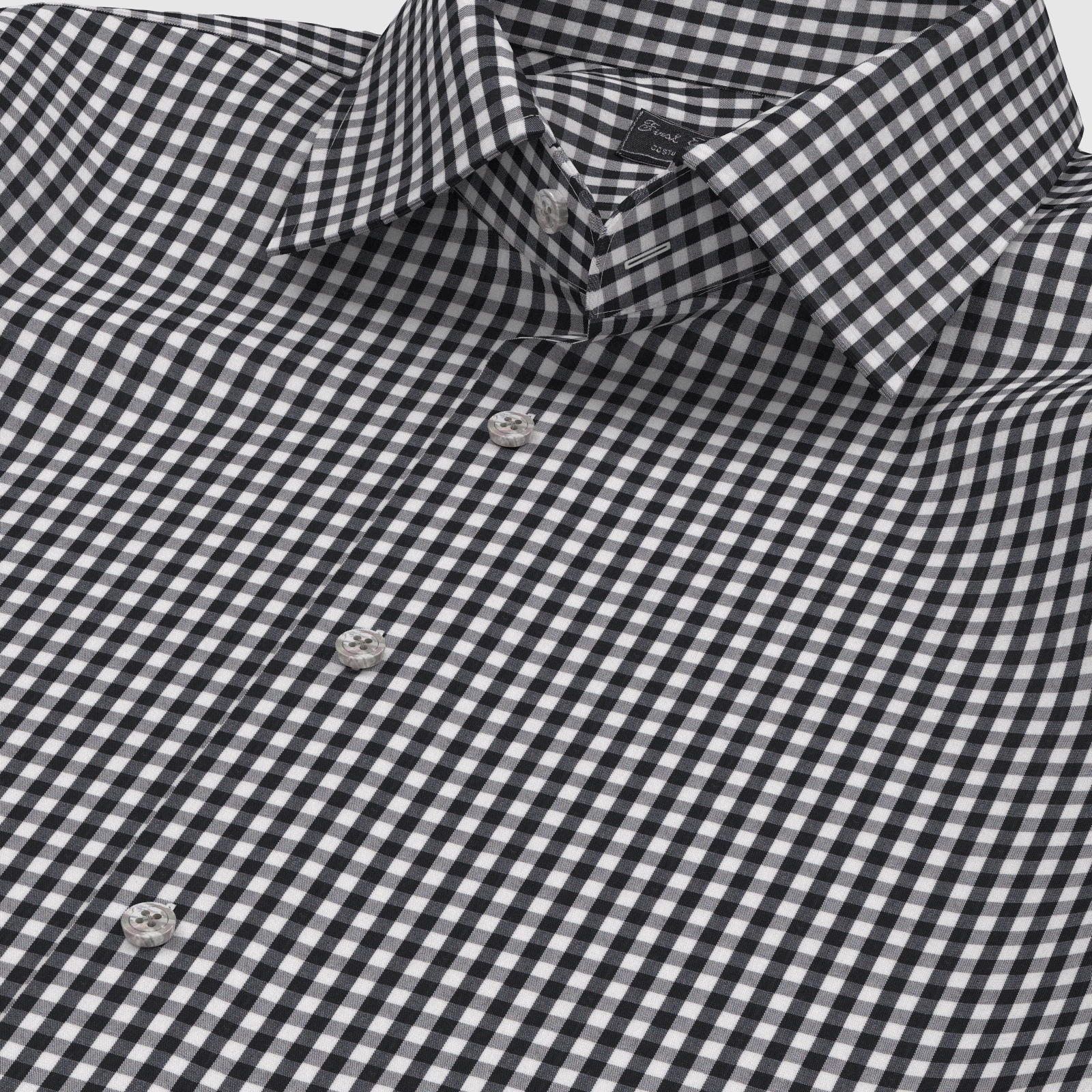 きれいなブラック・ブロックチェックの綿100%イージーケア素材です。家庭洗濯+軽いアイロンがけですっきり・きっちりと着こなせる忙しいビジネスマンにぴったりの素材です。肌触りも綿100%の風合いを損なわない着心地です。