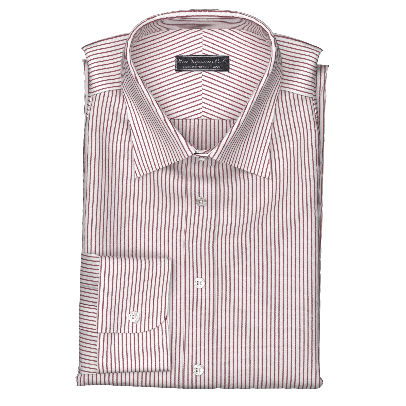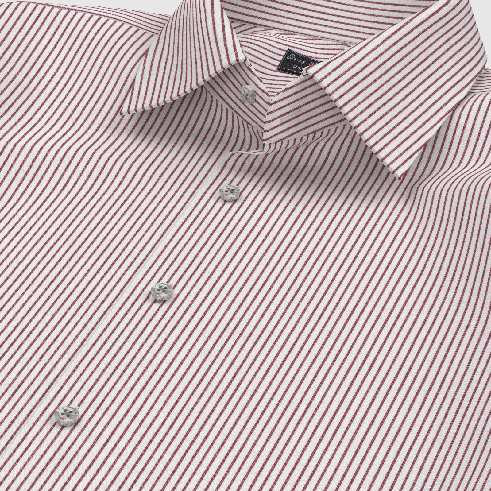 きれいなレッドの細めストライプの綿100%イージーケア素材です。家庭洗濯+軽いアイロンがけですっきり・きっちりと着こなせる忙しいビジネスマンにぴったりの素材です。肌触りも綿100%の風合いを損なわない着心地です。