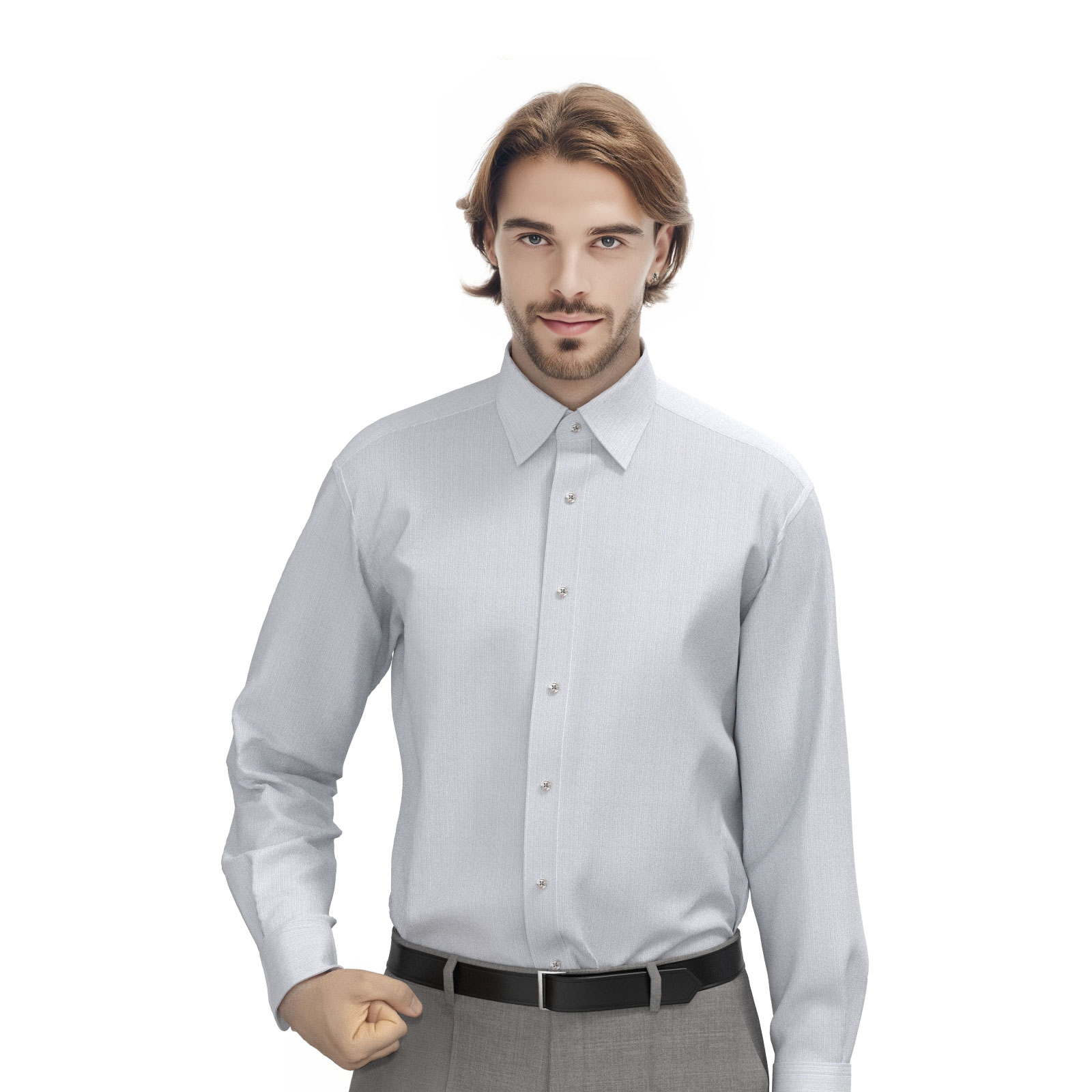ベーシックでメンテナンスフリーなグレーのドビーストライプ生地です。