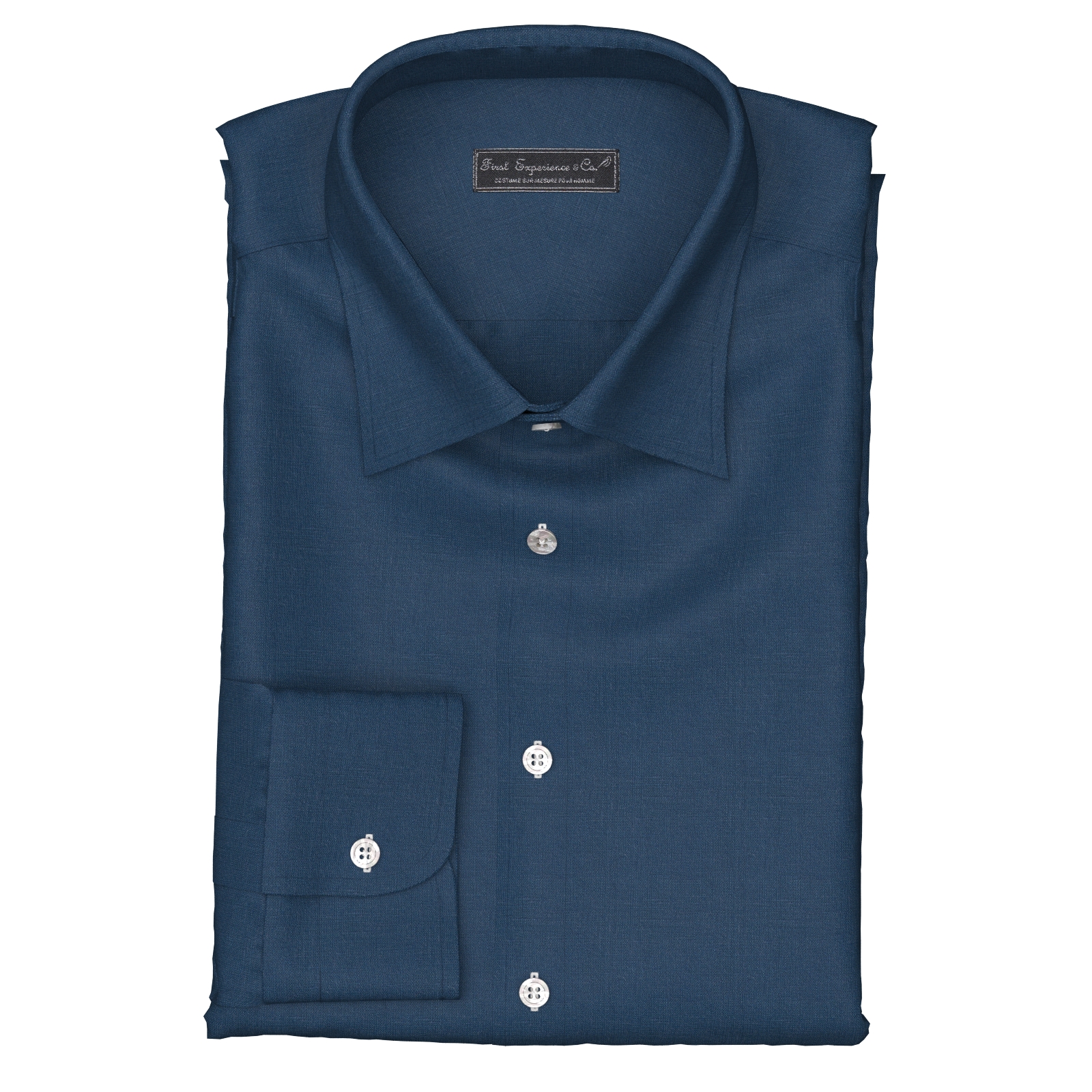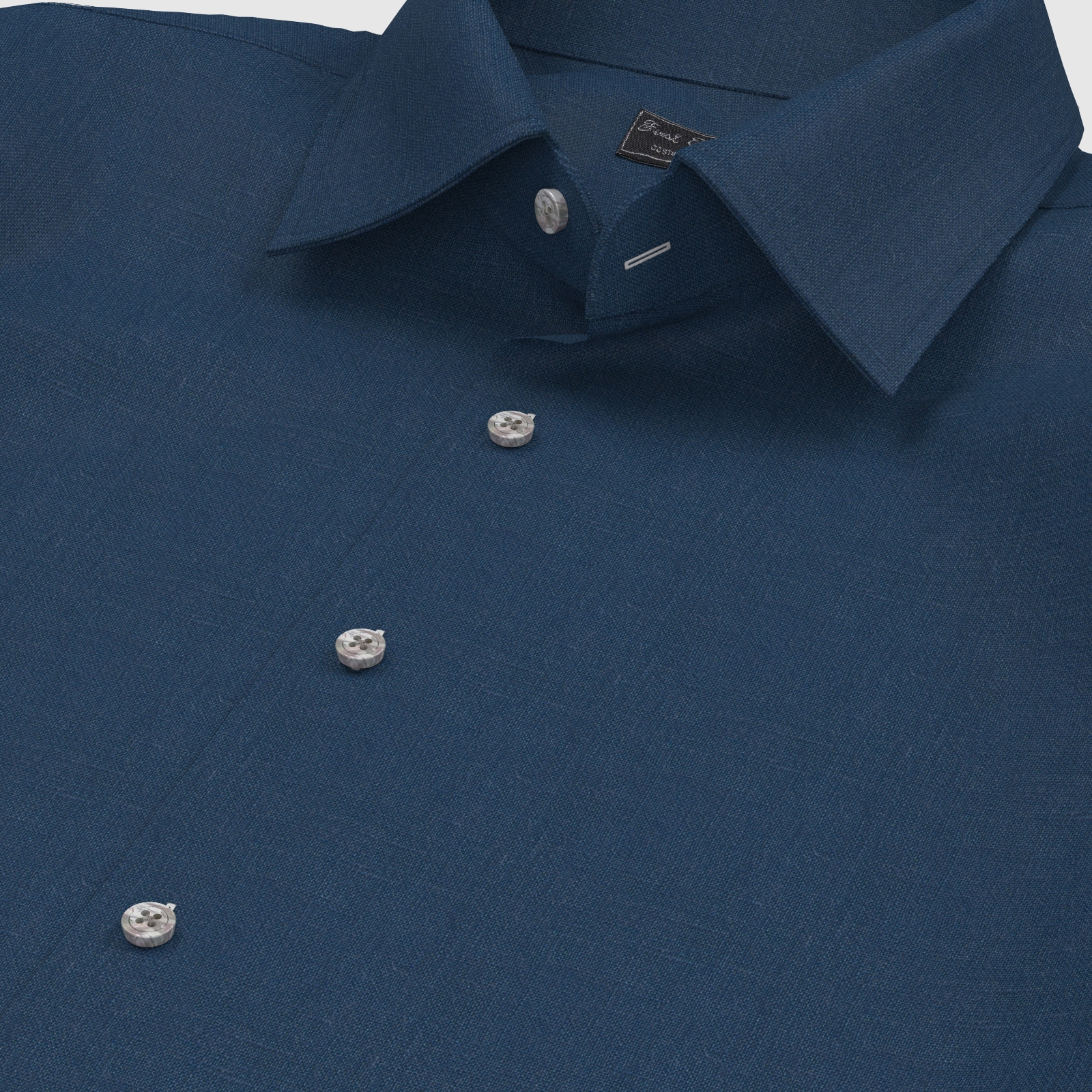 上質なフレンチリネン100%で織られた形態安定性とストレッチ性の高いウオッシュブルーの生地です。