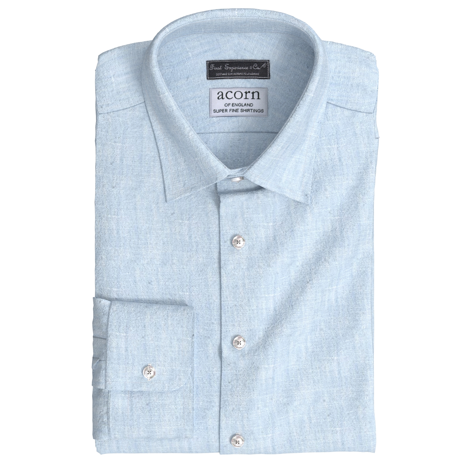 英国の誇りACORNの上質なリネン100%で織られたパウダーブルー(サックス)シャンブレー生地です。