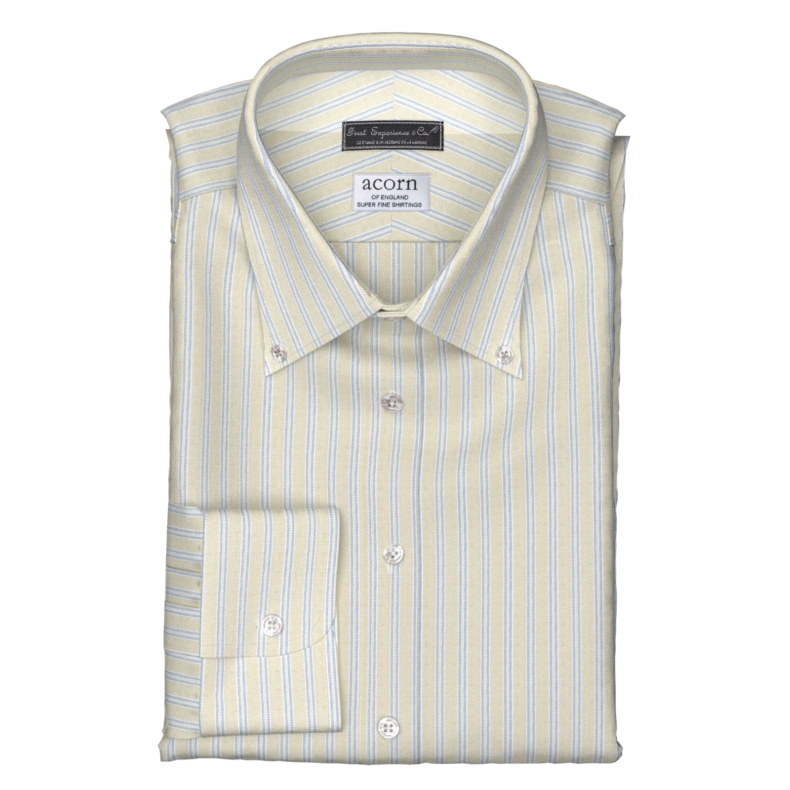 英国の伝統的なファブリックを多く生産しているエイコーンのクラシックなベージュストライプ・オックスフォード生地です。