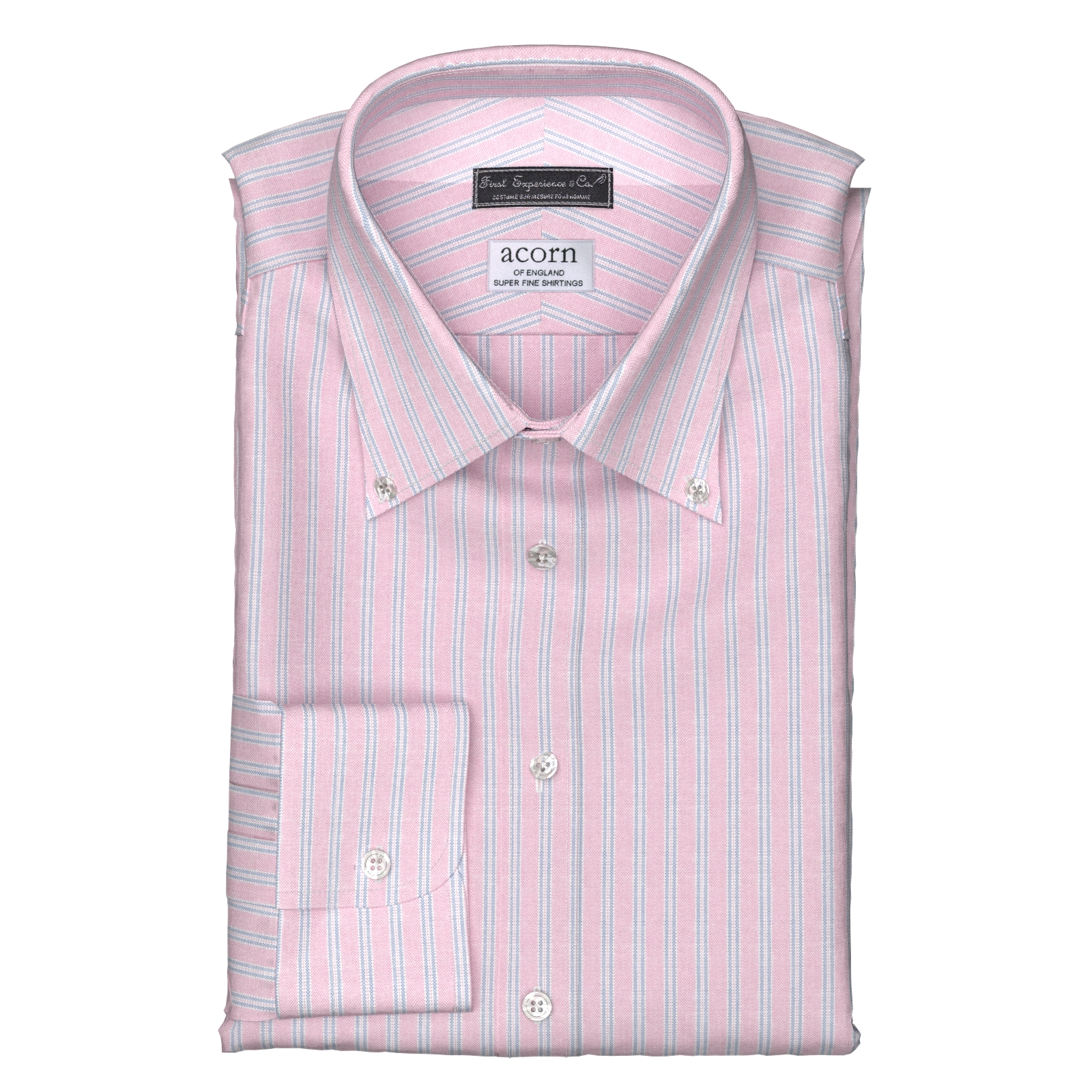 英国の伝統的なファブリックを多く生産しているエイコーンのクラシックなピンクストライプ・オックスフォード生地です。