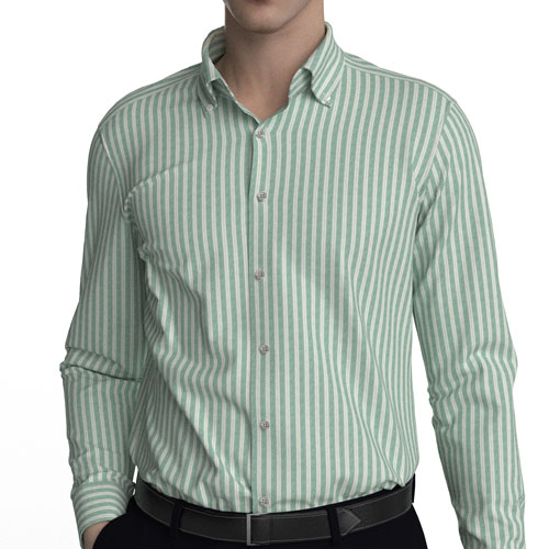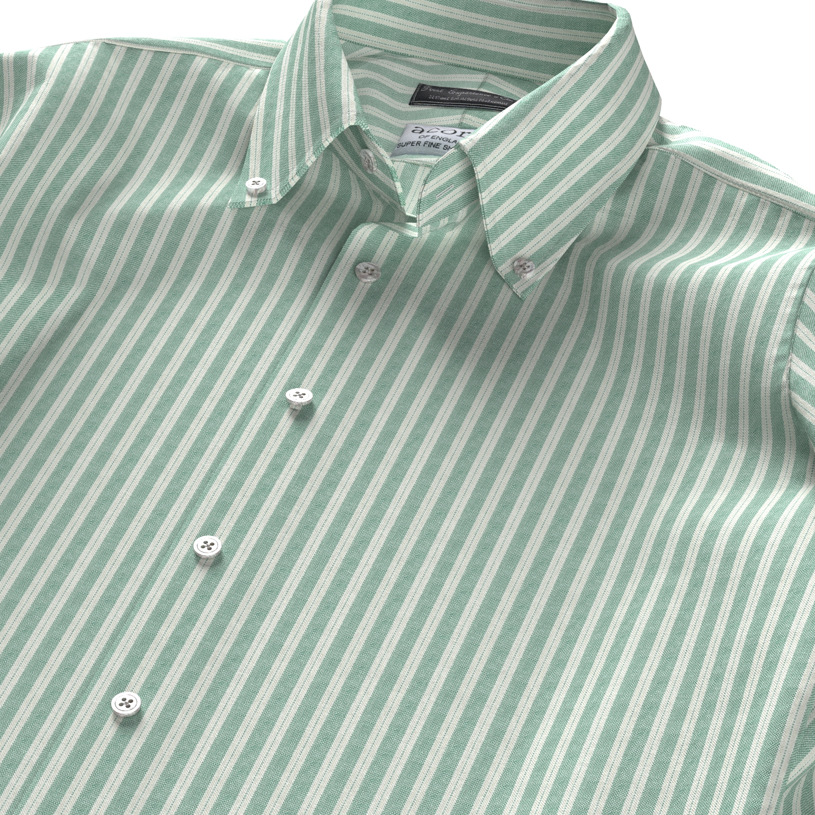 英国の伝統的なファブリックを多く生産しているエイコーンのクラシックなグリーンストライプ・オックスフォード生地です。