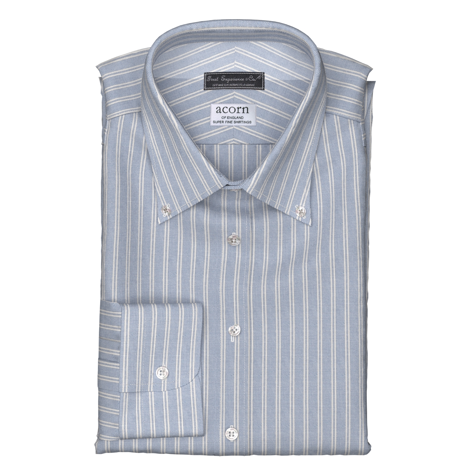 英国の伝統的なファブリックを多く生産しているエイコーンのクラシックなサックスストライプ・オックスフォード生地です。