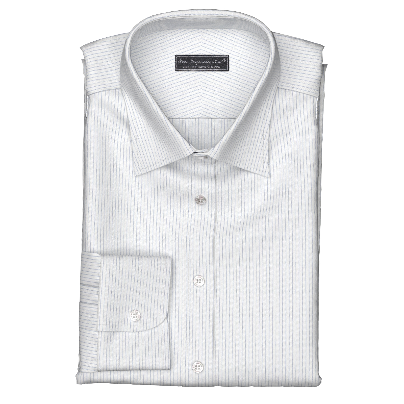 100双糸で上質な細かなヘリンボーン織にネイビーストライプが入った綿100%イージーケア素材です。家庭洗濯+軽いアイロンがけですっきり・きっちりと着こなせる忙しいビジネスマンにぴったりの素材です。肌触りも綿100%の風合いを損なわない着心地です。