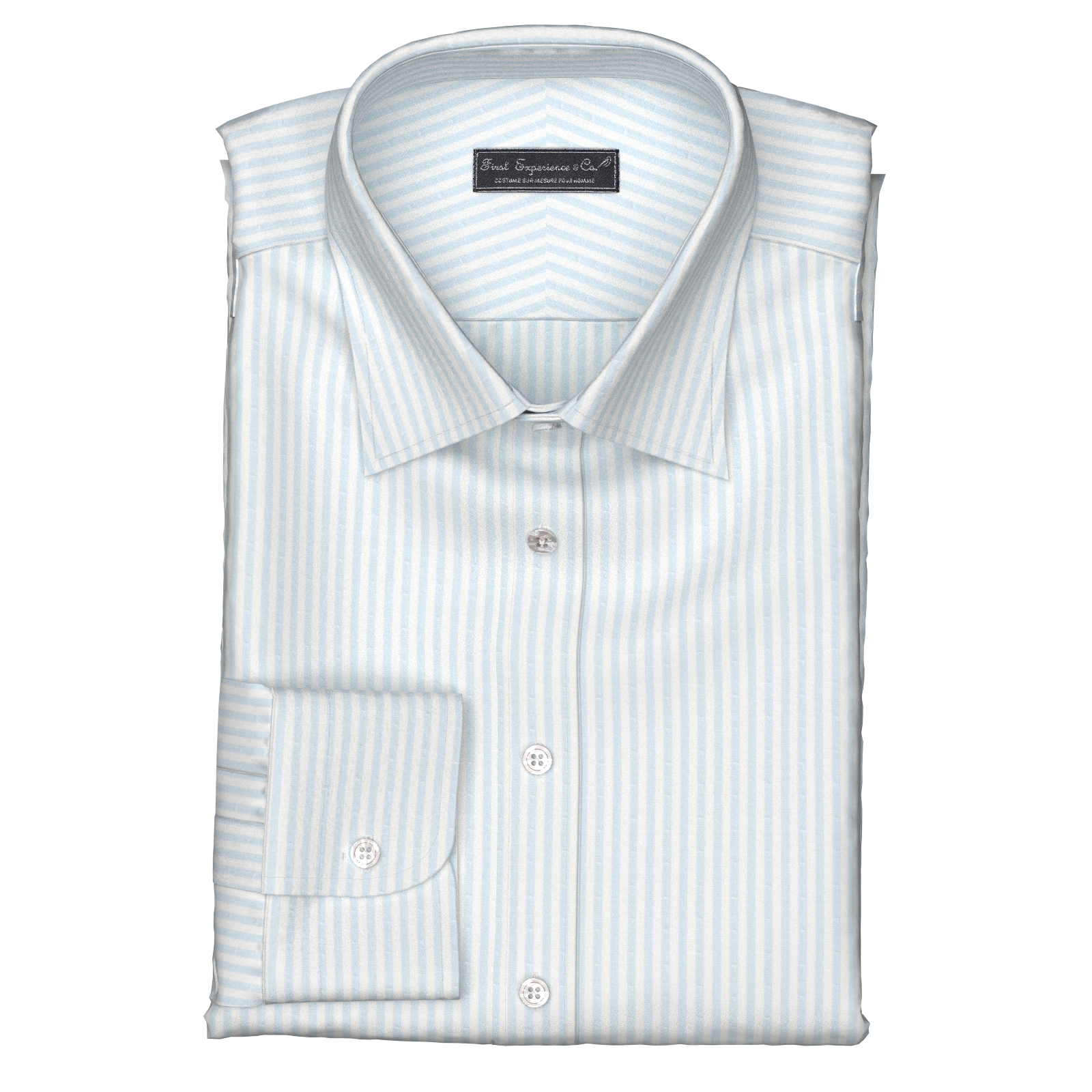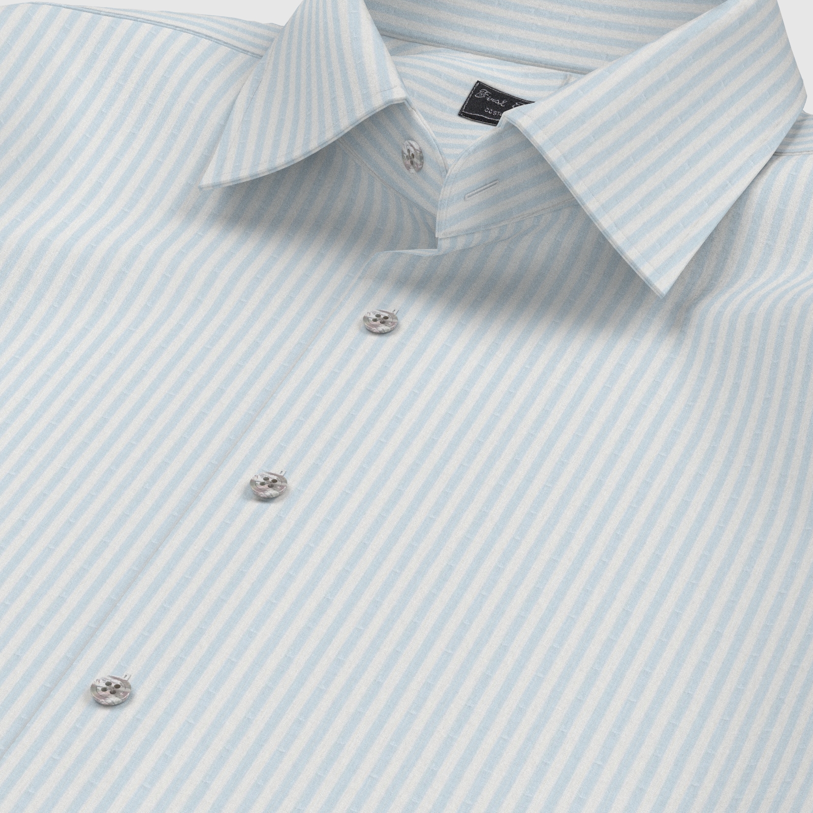 100双糸で上質なサックス・ロンドンストライプにドットが入った綿100%イージーケア素材です。家庭洗濯+軽いアイロンがけですっきり・きっちりと着こなせる忙しいビジネスマンにぴったりの素材です。肌触りも綿100%の風合いを損なわない着心地です。