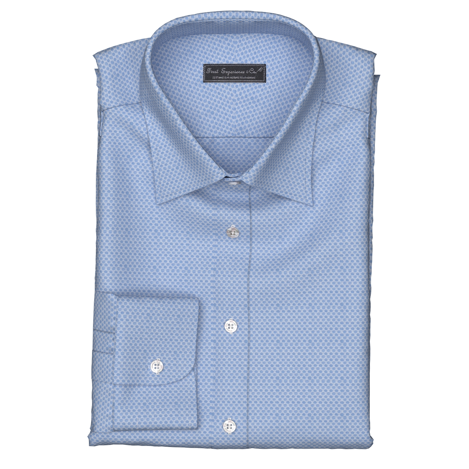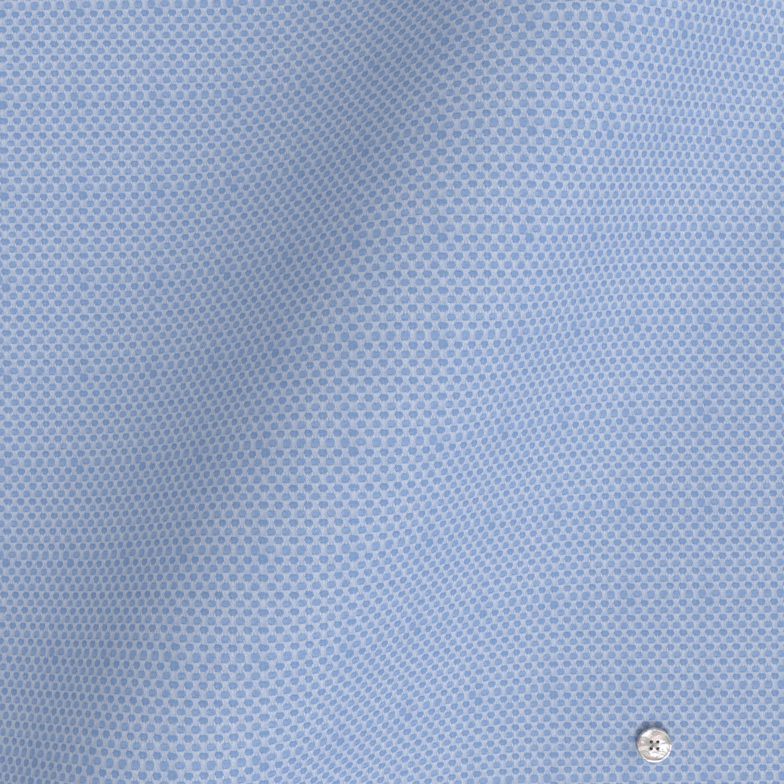 100双糸で上質なネイビー 水玉ドビードットの綿100%イージーケア素材です。家庭洗濯+軽いアイロンがけですっきり・きっちりと着こなせる忙しいビジネスマンにぴったりの素材です。肌触りも綿100%の風合いを損なわない着心地です。