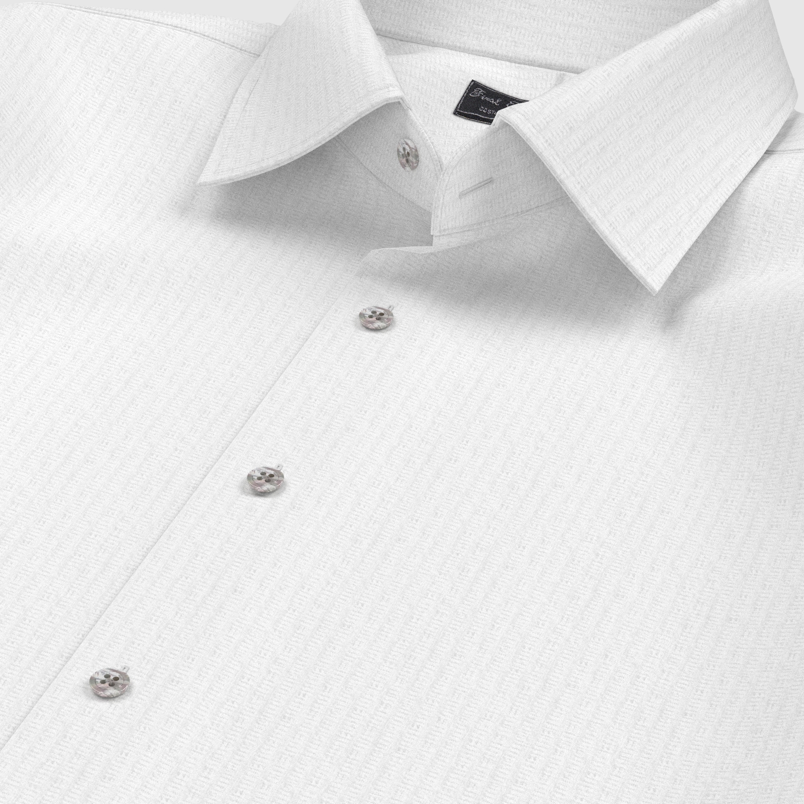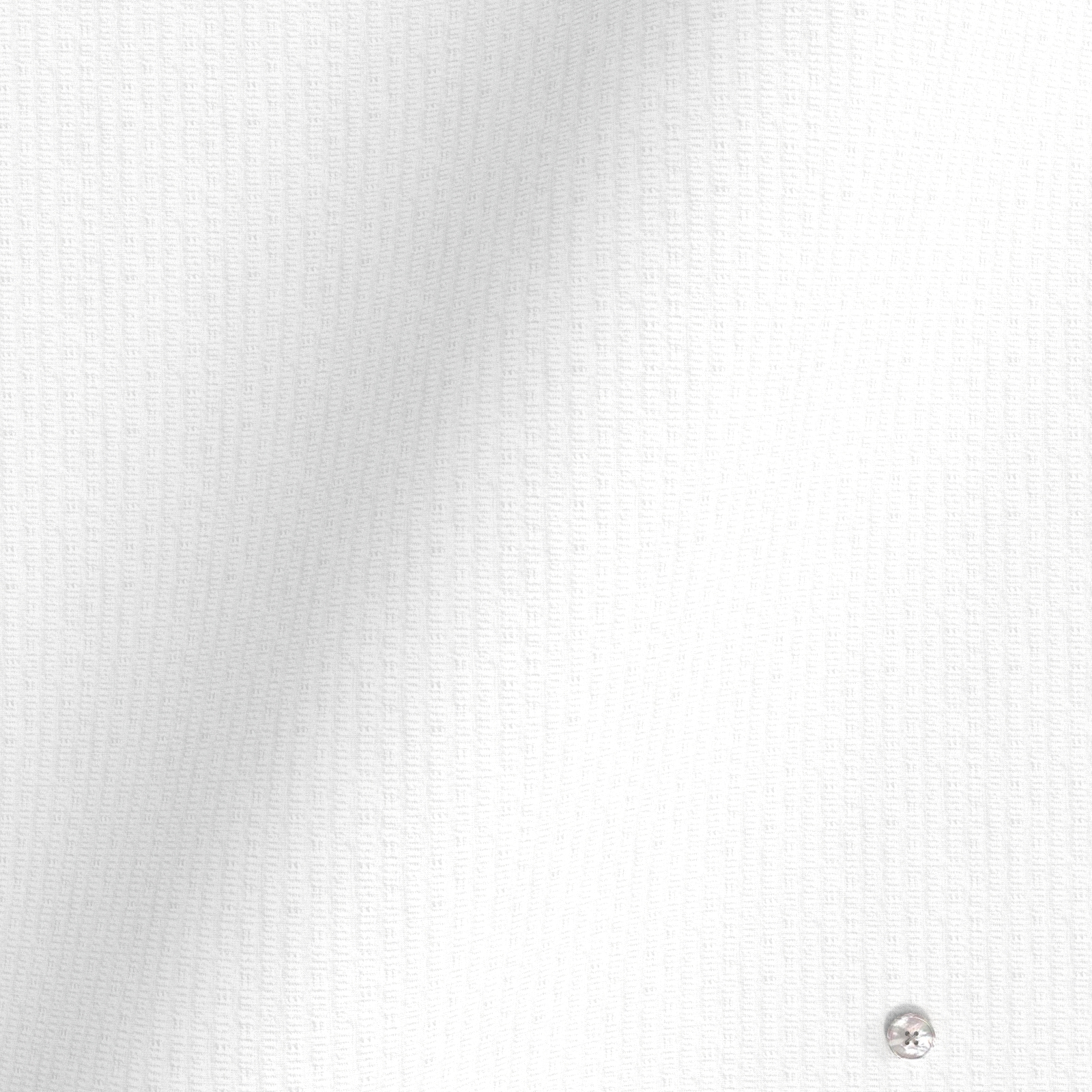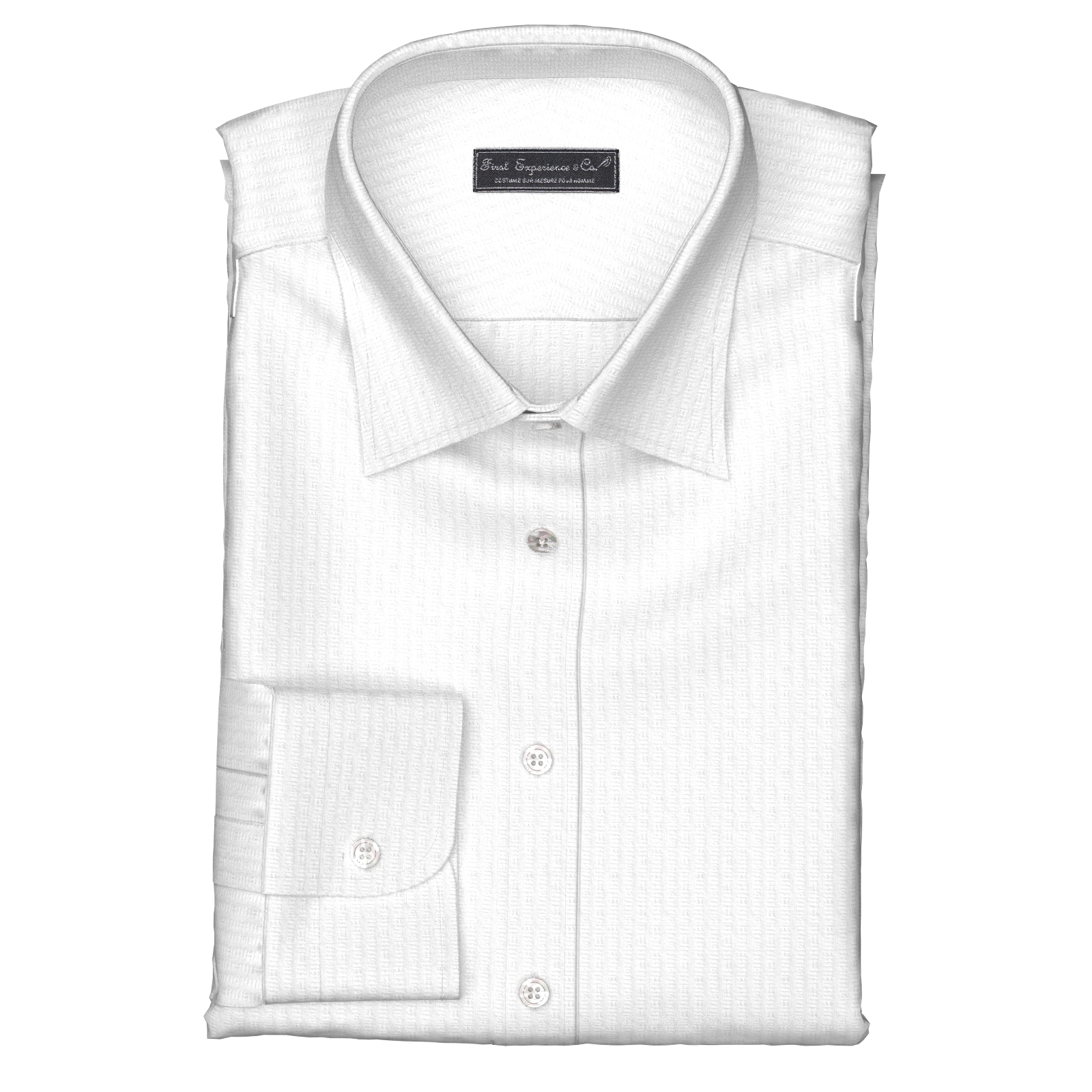 100双糸で上質な ホワイト ドビーストライプでにドットが入った綿100%イージーケア素材です。家庭洗濯+軽いアイロンがけですっきり・きっちりと着こなせる忙しいビジネスマンにぴったりの素材です。肌触りも綿100%の風合いを損なわない着心地です。