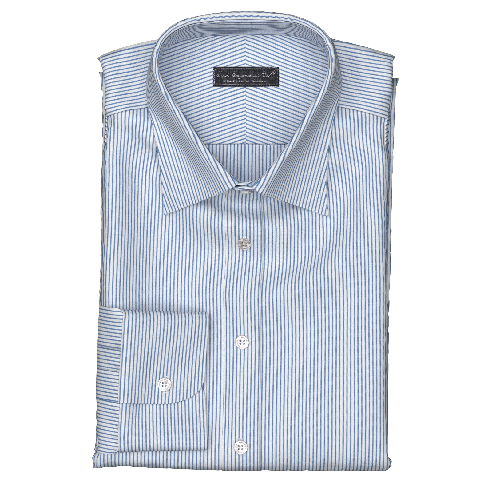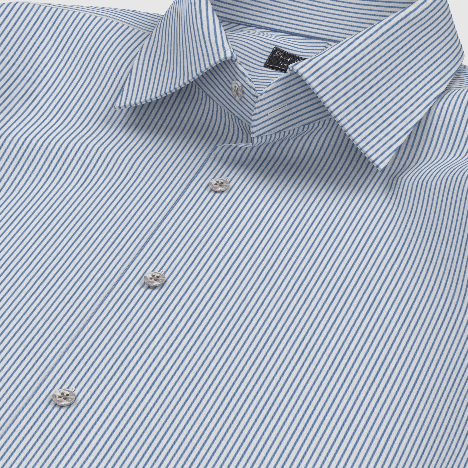 上質で柔らかな素材感が特徴の130双糸精紡交撚(サイロスパン)のブルー・ストライプ生地です。