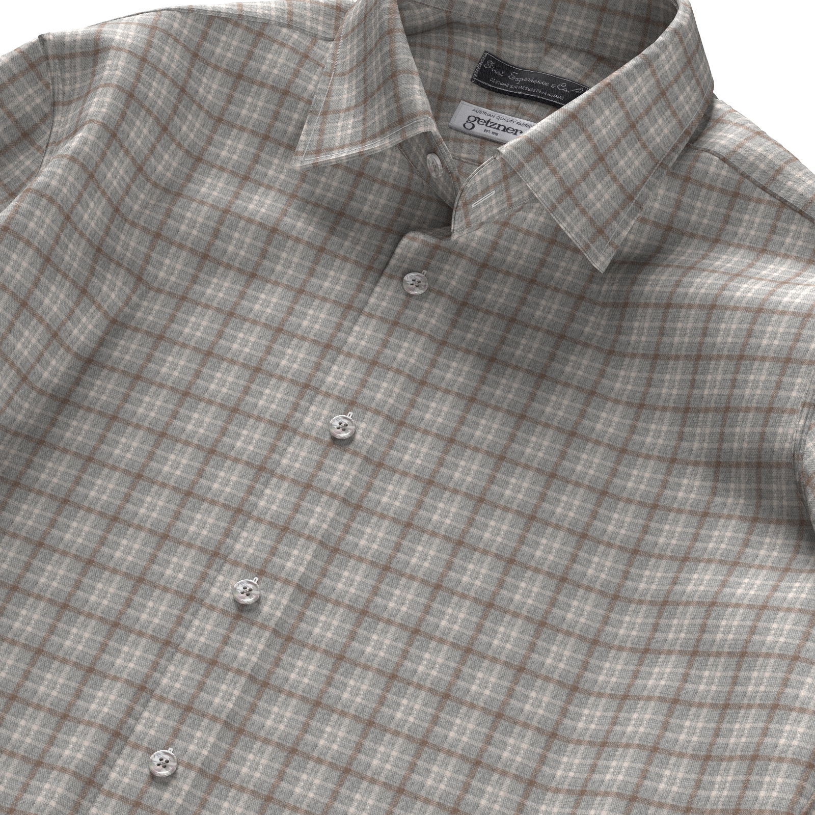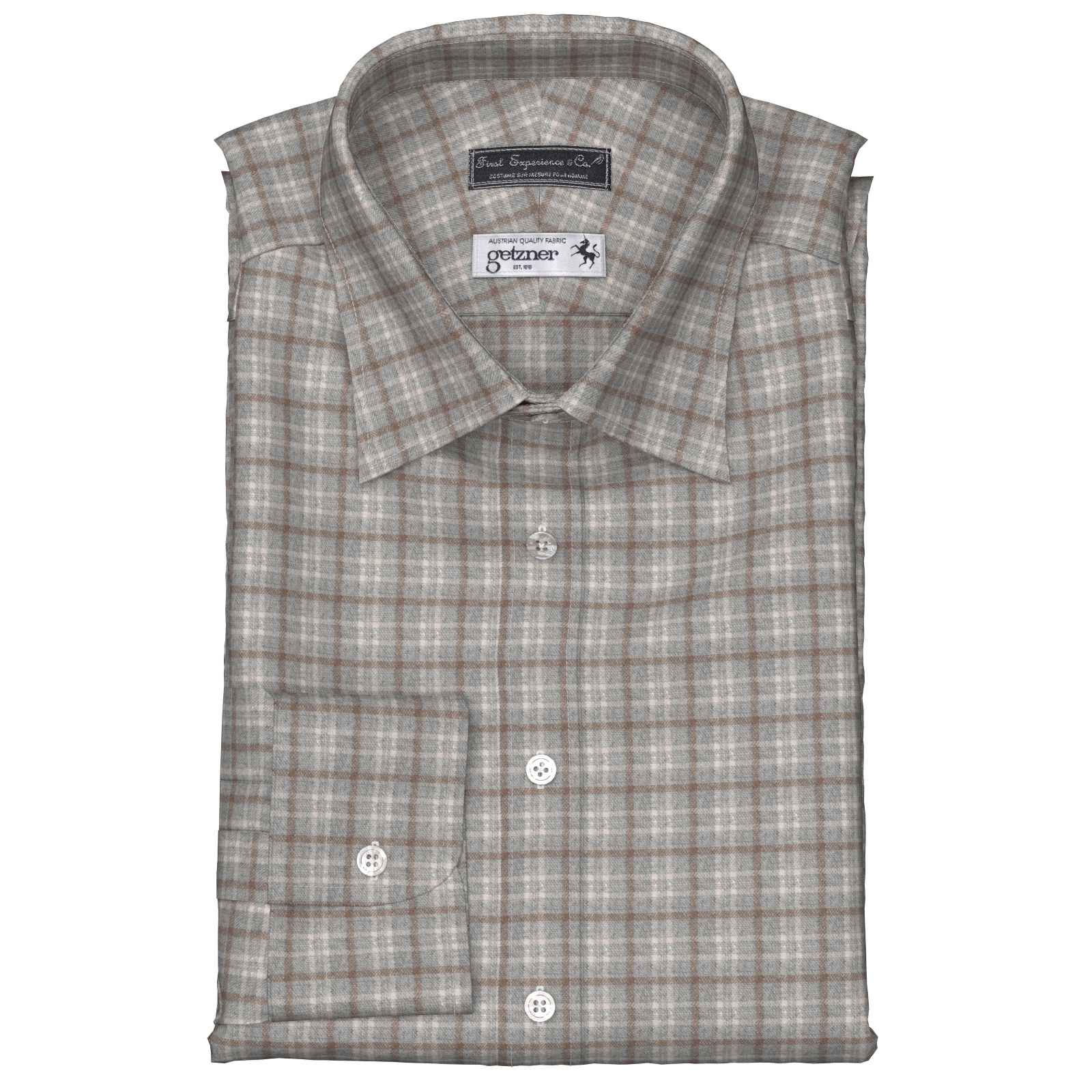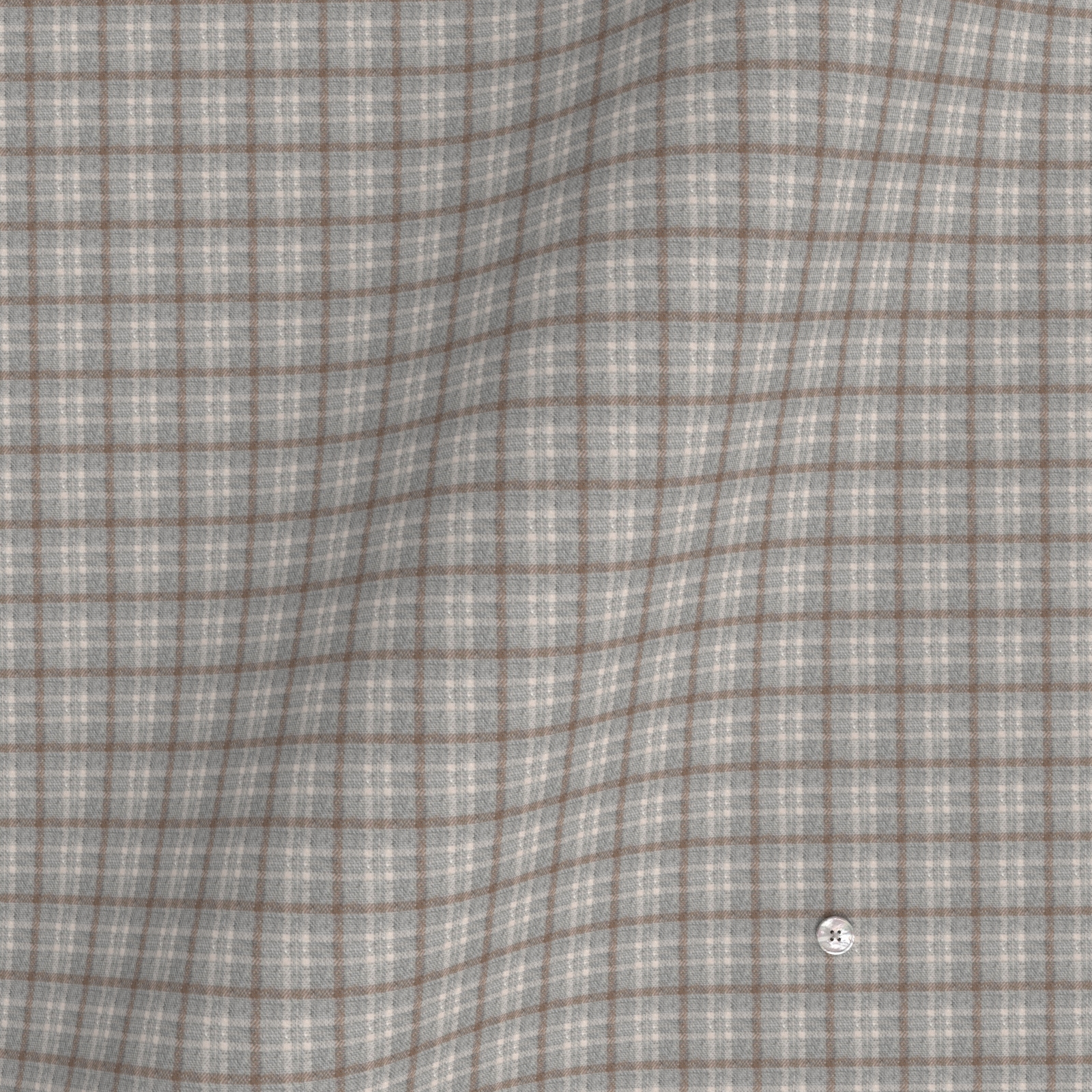 オーストリアの有名生地ブランドGetznerのウール混フランネルのグレー×ベージュブラウンの格子柄生地となります。
