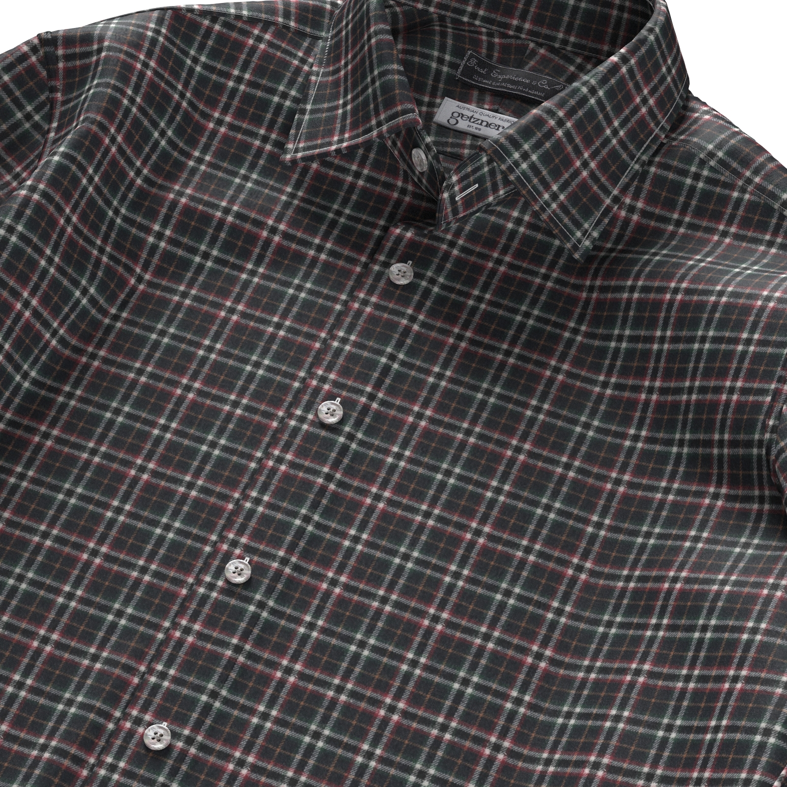 オーストリアの有名生地ブランドGetznerのウール混フランネルのブラック×レッド×グリーン×イエローの格子柄の生地となります。