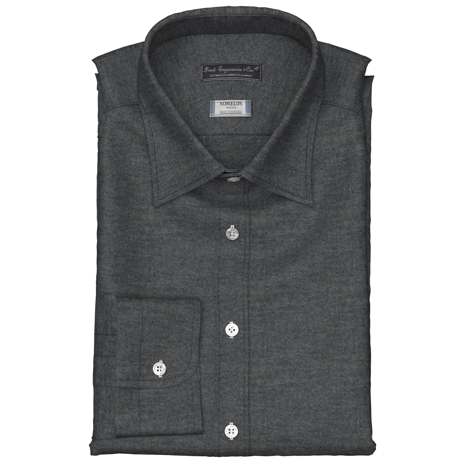 世界的に有名なポルトガルの生地メーカーSOMELOSのシャンブレー・フランネルのブラック・ツイル生地となります。