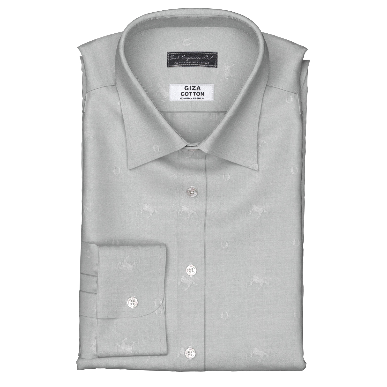 上質で知られるGIZA96のグレー 馬と蹄鉄柄ドビー100双糸生地です。