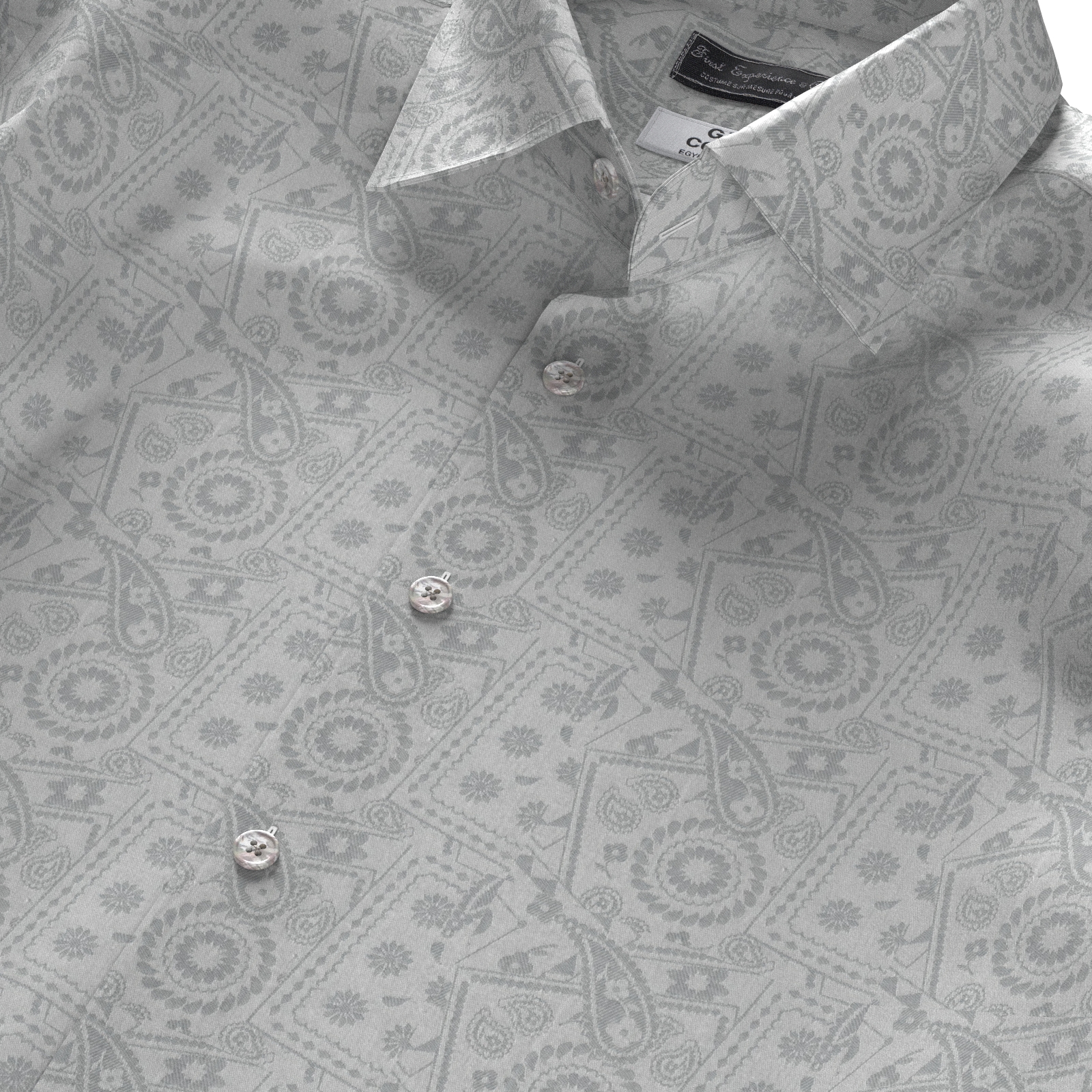 上質で知られるGIZA96のグレー ペイズリー柄ドビー100双糸生地です。