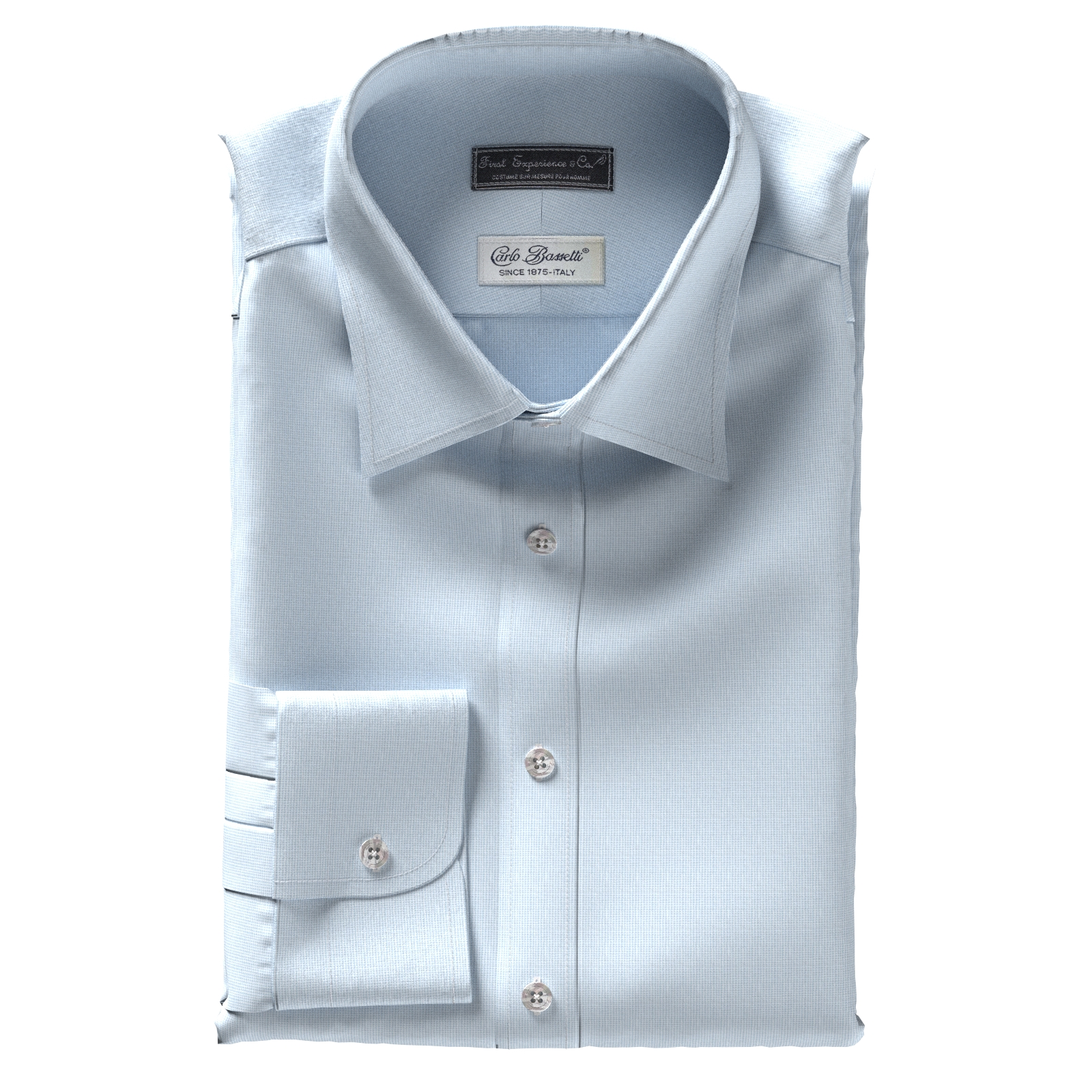 イタリアの老舗生地メーカー CARLO BASSETTI(カルロバセッティ)のサックスのマイクロ格子ドビー織生地です。