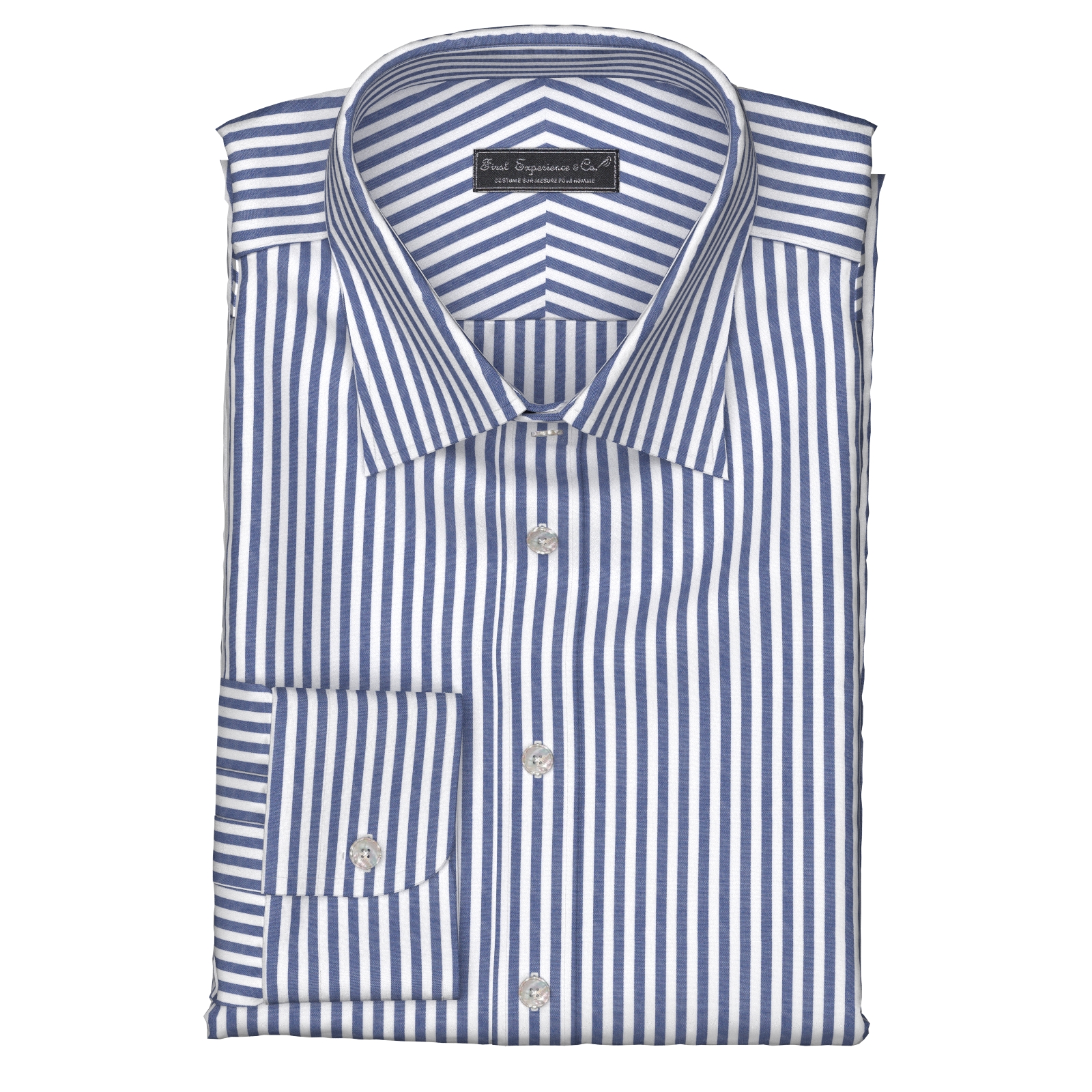 イージーケア性に優れたCOOLMAX Eco Madeのネイビー ボールドストライプの高級感のある生地です。