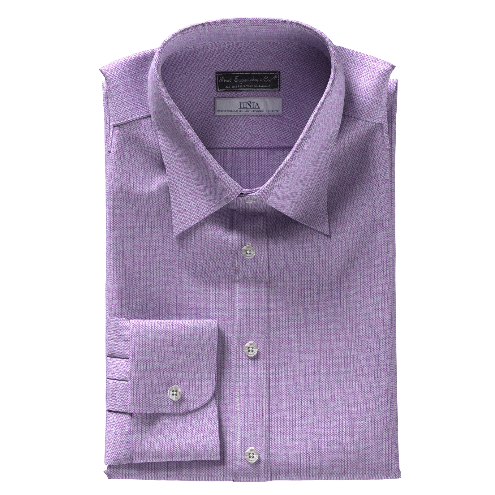 上質で知られるイタリアTESTAの薄手で柔らかな綿麻素材のネップ感のある白糸×パープルのシャンブレー生地です。滑らかな肌触りときれいな発色が魅力の素材です。
