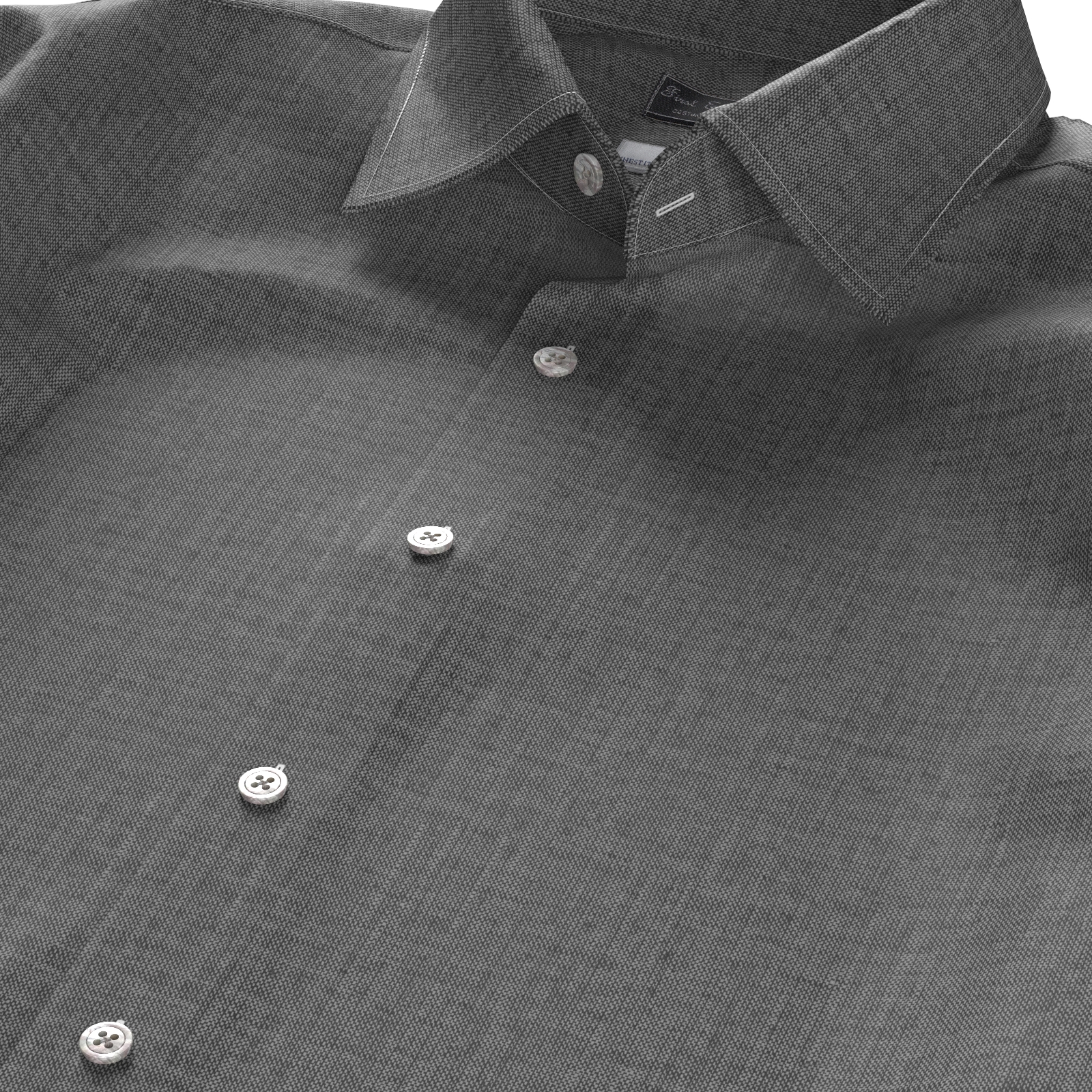 上質で知られるイタリアTESTAの薄手で柔らかな綿麻素材のネップ感のある白糸×ブラックのシャンブレー生地です。滑らかな肌触りときれいな発色が魅力の素材です。
