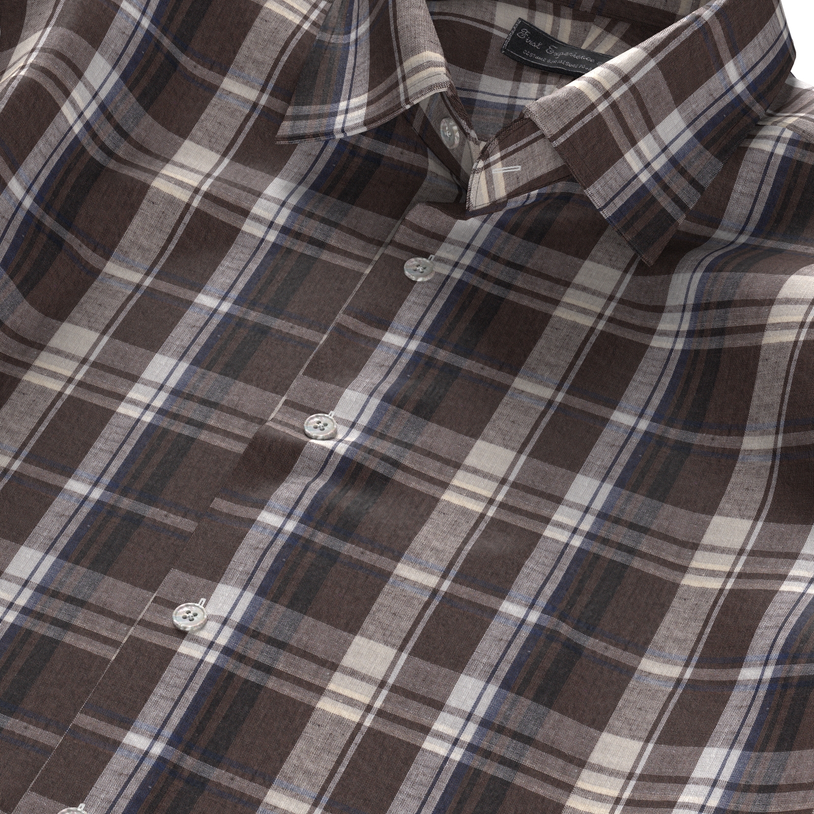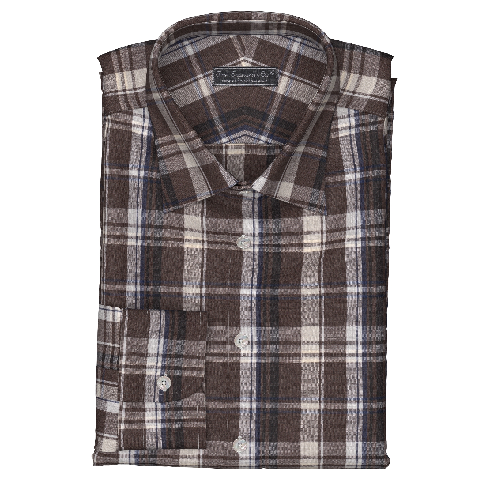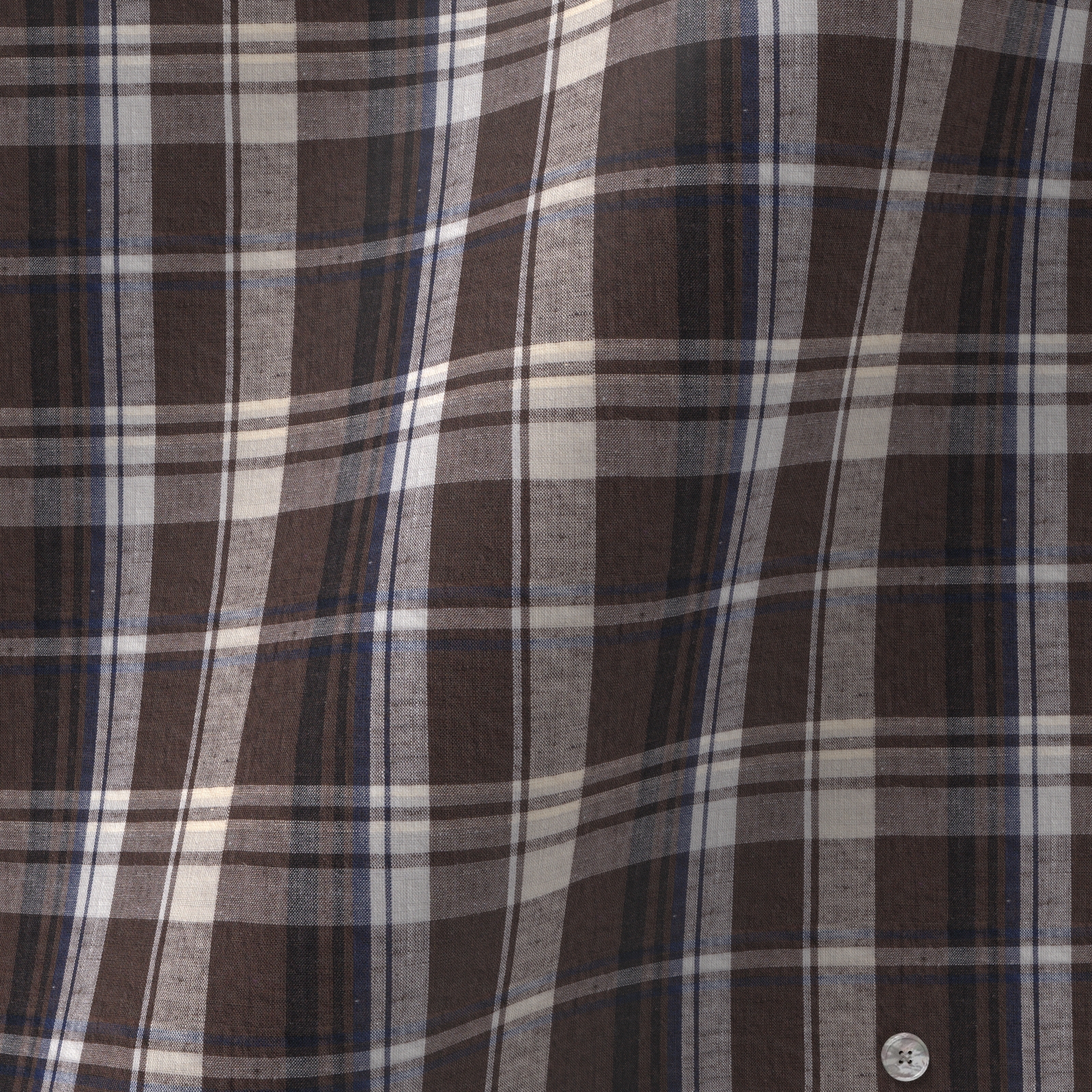 上質なインド綿に理念をブレンドした上質なマドラスのブラウン ネイビー ホワイト チェックです。程よいハリ・コシがあり、麻によるさらっとしたタッチとナチュラルなルックスが特徴。カラフルな色合いのマドラスチェックです