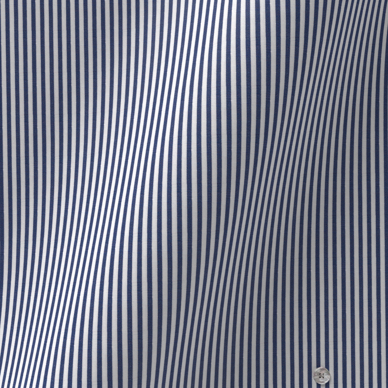 現在、世界のファッション・コレクションを上質な素材ときれいな発色で席巻する勢いのSOKTASの綿麻ネイビー ロンドン ストライプ生地です。
