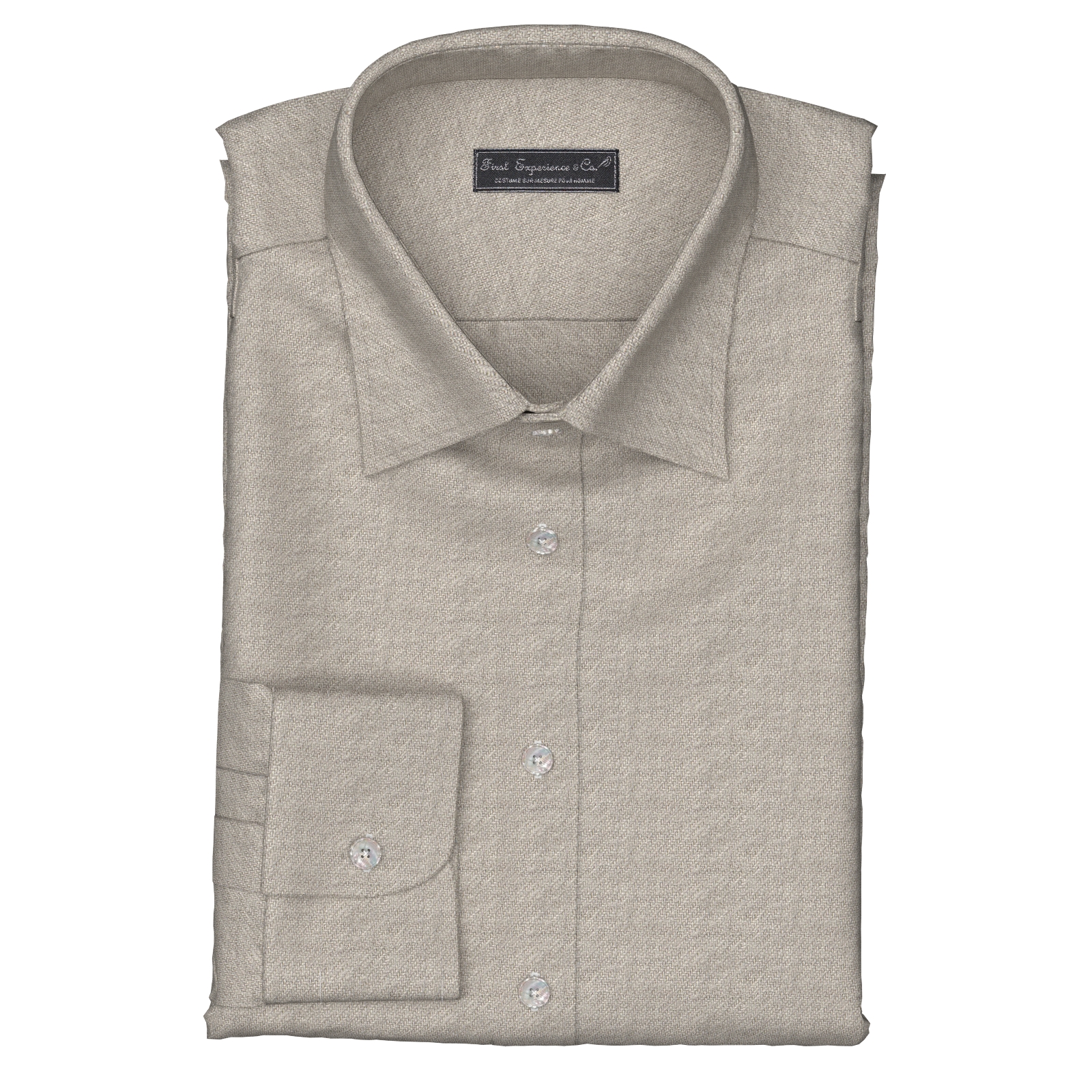 コットンビエラのしなやかなコシとふうわりとソフトな柔らかさが特徴のグレージュ(グレーベージュ)の両面起毛生地です。少し厚みのある素材感は、秋から冬にかけてピッタリの素材です。