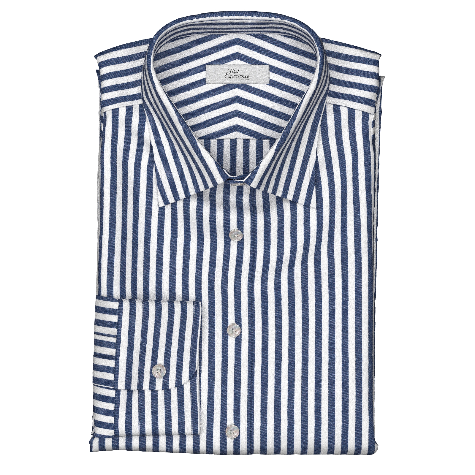 最高級の超長綿を使用して遠州の織機で織り上げた120双糸のROYAL COTTONのネイビー・ボールドストライプ生地です。